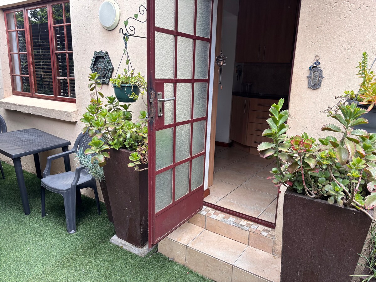 Χωρίς διακοπές ρεύματος ή νερού! Απολαύστε μια γαλήνια διαμονή στο όμορφο διαμέρισμά μας με 1 υπνοδωμάτιο, μόλις 9 χλμ. από το αεροδρόμιο OR Tambo. Το υπνοδωμάτιο διαθέτει υπέρδιπλο κρεβάτι, έξυπνη τηλεόραση με υπηρεσίες streaming και άφθονο αποθηκευτικό χώρο. Η πλήρως εξοπλισμένη κουζίνα περιλαμβάνει σύγχρονες συσκευές και δωρεάν τσάι/καφέ. Χαλαρώστε στο σαλόνι με ένα κρεβάτι 3/4. Μείνετε ζεστοί με μια ηλεκτρική κουβέρτα τον χειμώνα. Οι σκύλοι μας, ο Cody και η Chloe, ζουν στην ιδιοκτησία. Η ηλιακή ενέργεια, η εφεδρική μπαταρία και το σύστημα νερού εξασφαλίζουν αδιάλειπτη άνεση