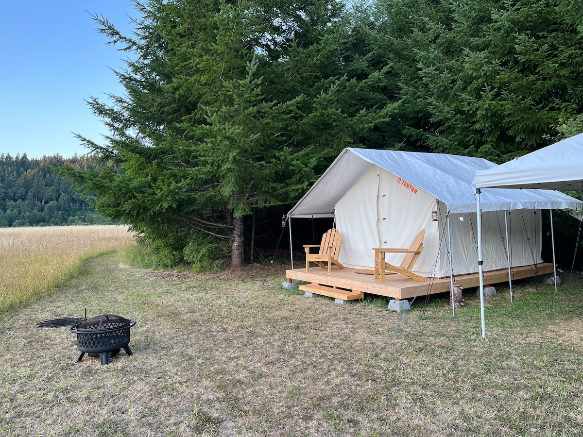 Βρείτε ξανά την επαφή με τη φύση με αυτήν την αξέχαστη απόδραση! Μόλις 90 λεπτά από το Πόρτλαντ ή το Σιάτλ, αυτός ο πολυτελής χώρος glamping βρίσκεται σε 890 στρέμματα απομονωμένης ιδιωτικής άγριας φύσης κατά μήκος του ποταμού Chehalis. Κοιμηθείτε σε ένα άνετο υπέρδιπλο κρεβάτι! Υπάρχει ηλεκτρικό ρεύμα, WIFI, ξυλόσομπα, πραγματικό μπάνιο, εξωτερική κουζίνα και μια γραφική εξωτερική ντουζιέρα με ζεστό νερό. Ελάτε να χαλαρώσετε, να κάνετε πεζοπορία και να εξερευνήσετε!