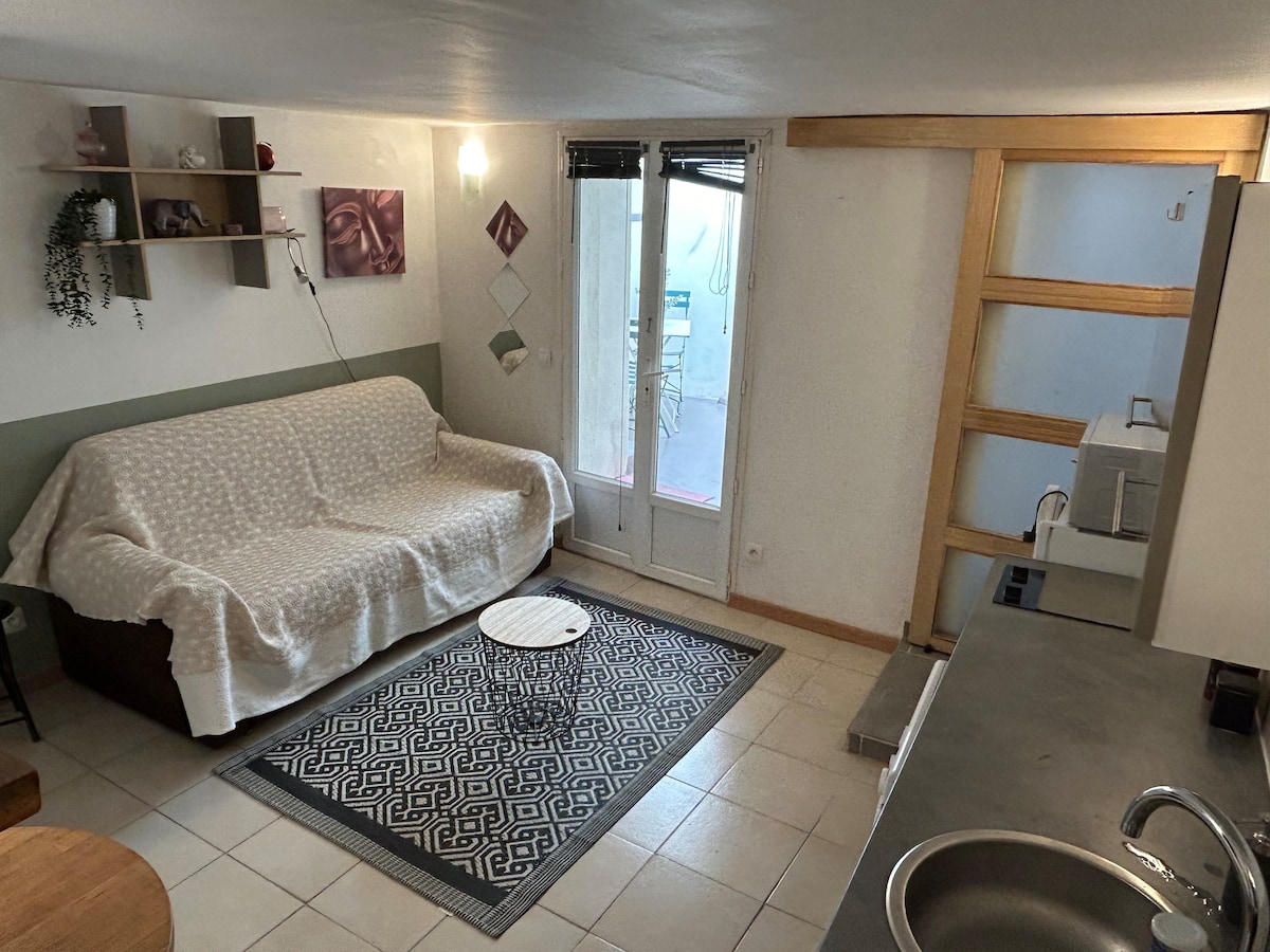 Πρόσφατα ανακαινισμένο στούντιο 36 τ.μ. στον 3ο όροφο μιας καλά διαμορφωμένης έπαυλης και ιδανικά τοποθετημένο για να ανακαλύψετε το Corbières, το Canal du Midi και την περιοχή των Καθάρων. Μεταξύ Ναρμπόν και Καρκασόν, στην καρδιά του αμπελώνα Κορμπιέρ, Εύκολα προσβάσιμο τόσο με αυτοκίνητο (D6113 και αυτοκινητόδρομος Τουλούζης) όσο και με τρένο καθώς είναι κοντά στον σιδηροδρομικό σταθμό. Διατίθεται δάνειο ποδηλάτου. Πάρκινγκ μπροστά από το σπίτι.