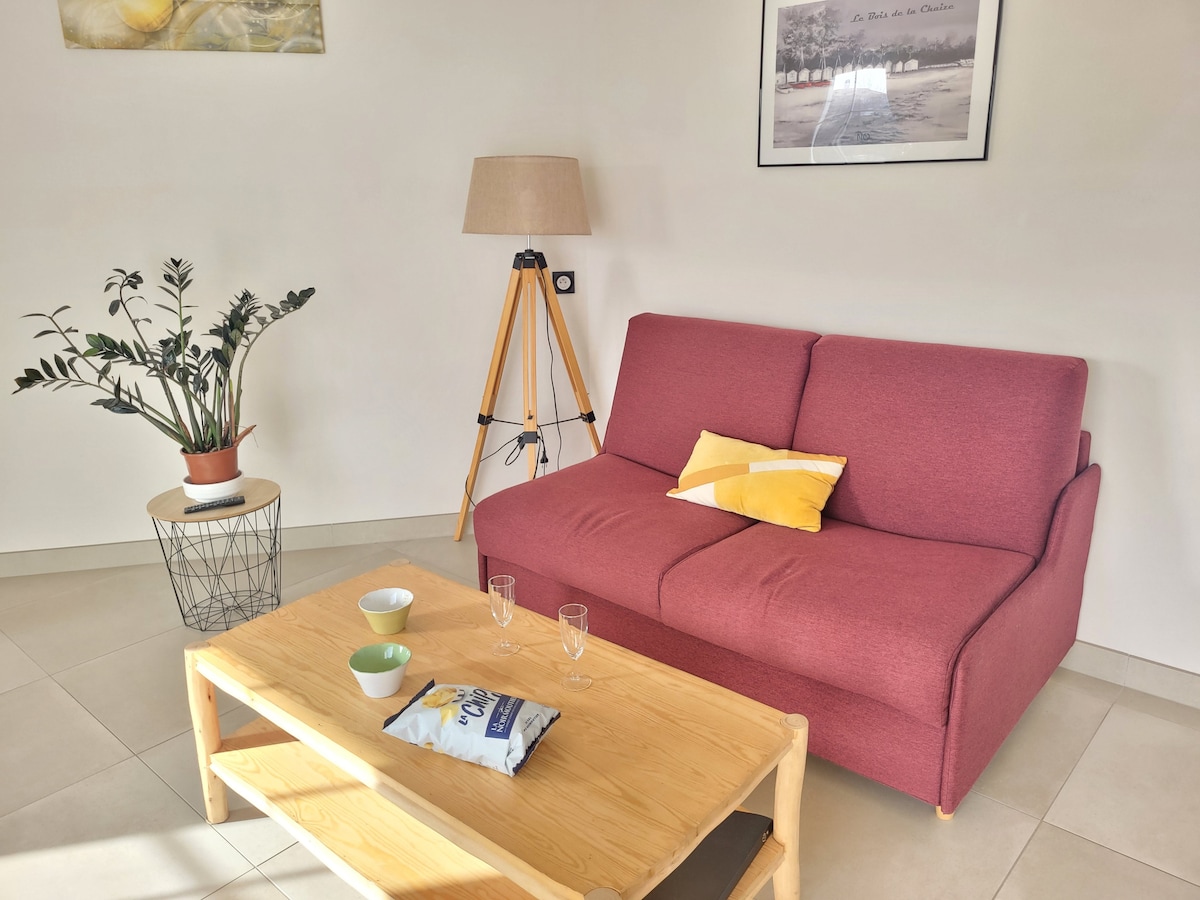 Le studio du Feu follet est situé au premier étage dans une résidence privée très calme. Vous avez à votre disposition un balcon ainsi qu'une terrasse privative sans vis-à-vis au RDC de 20m² qui, à la nuit tombée, vous offrira une touche de romance en s'illuminant. Très bien localisé, vous pourrez oublier votre véhicule et réaliser vos déplacements à pieds ou à vélo. L'océan est à 300m. La plage, le port et ses commerces ainsi que les pistes cyclables sont à 700m.