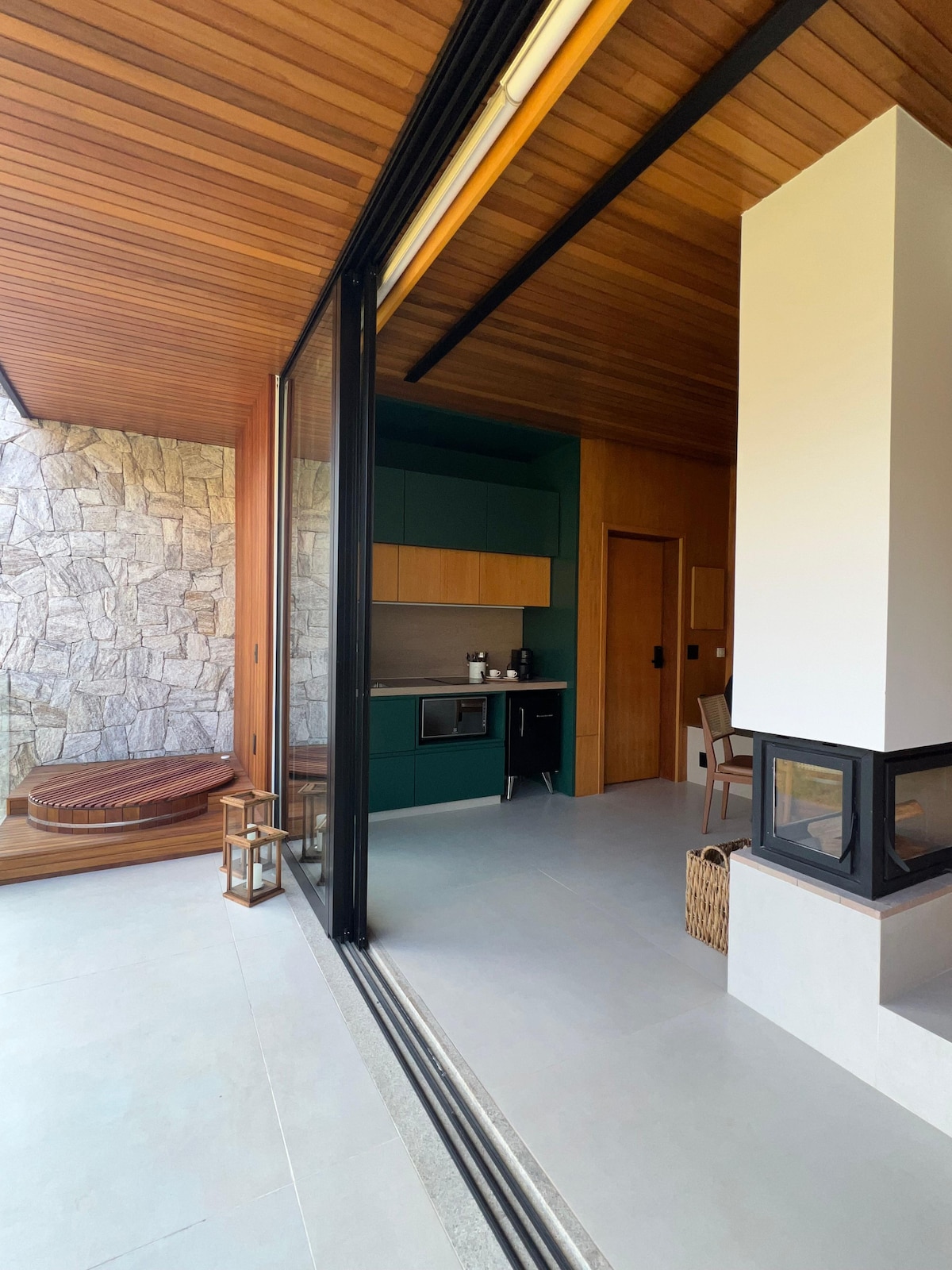 Οι στέγες στο επίπεδο του καταστρώματος και ο ήχος του καταρράκτη μπροστά από το σπίτι σας προσκαλούν να ξεκουραστείτε. @casamacushla Ο αρχιτεκτονικός σχεδιασμός του σπιτιού είχε ως πρωταρχικό στόχο την ανάδειξη της πληθωρικότητας του Ατλαντικού Δάσους. Μέσα από τις αλληλοεπικαλυπτόμενες διαφάνειες οι χώροι αναδεικνύονται και πλαισιώνουν την ομορφιά του περιβάλλοντος χώρου, επιτρέποντας την τέλεια παρατήρηση του καταρράκτη και των γύρω δέντρων.