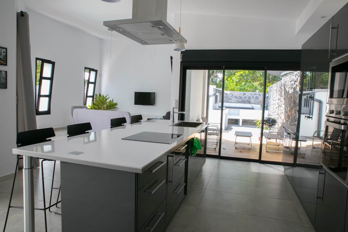 Επιπλωμένη τουριστική ιδιοκτησία 3 αστέρων, ιδανική για μήνα του μέλιτος, στον πανέμορφο κόλπο Manapany, σε μικρή απόσταση με τα πόδια από τη φυσική πισίνα. Μια τεράστια βεράντα με θέα στον Ινδικό Ωκεανό μέχρι εκεί που φτάνει το μάτι. Το τεράστιο γυάλινο παράθυρο σας επιτρέπει να απολαύσετε αυτό το εξαιρετικό σκηνικό από το εσωτερικό του καταλύματος, διατηρώντας παράλληλα πλήρως την ιδιωτικότητά σας. Ο σχεδιασμός αυτού του σπιτιού είναι πολυτελής και μοναδικός, με υψηλής ποιότητας υλικά και παροχές. Παρέχονται καφές και τσάι. Wi-Fi με ίντερνετ οπτικών ινών. Υποδοχές USB.