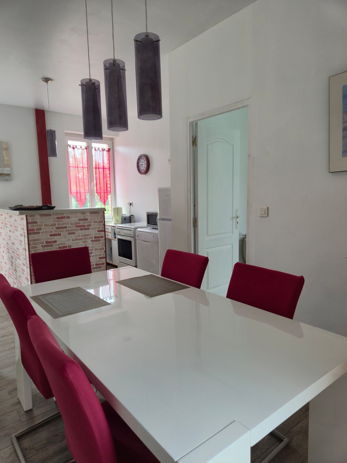 Αρχοντικό στο κέντρο του Meung-sur-Loire 2 λεπτά με τα πόδια από το Κάστρο 5 λεπτά από τον Λίγηρα Μεταξύ της Ορλεάνης και της Μπλουά 30 λεπτά από το Σαμπόρ Σπίτι 102m2 σε 3 επίπεδα που μπορεί να φιλοξενήσει έως 6 άτομα Ισόγειο: κουζίνα, σαλόνι, τουαλέτα 1ος όροφος: 1 μεγάλο υπνοδωμάτιο, 1 μικρό υπνοδωμάτιο, 1 μπάνιο Η πρόσβαση στον 2ο όροφο γίνεται με μια απότομη σκάλα 2ος όροφος: 1 υπνοδωμάτιο, 1 μπάνιο Δυνατότητα αυτόνομης άφιξης Δωρεάν δημόσιοι χώροι στάθμευσης σε κοντινή απόσταση Δεν είναι κατάλληλο για άτομα με κινητικές δυσκολίες
