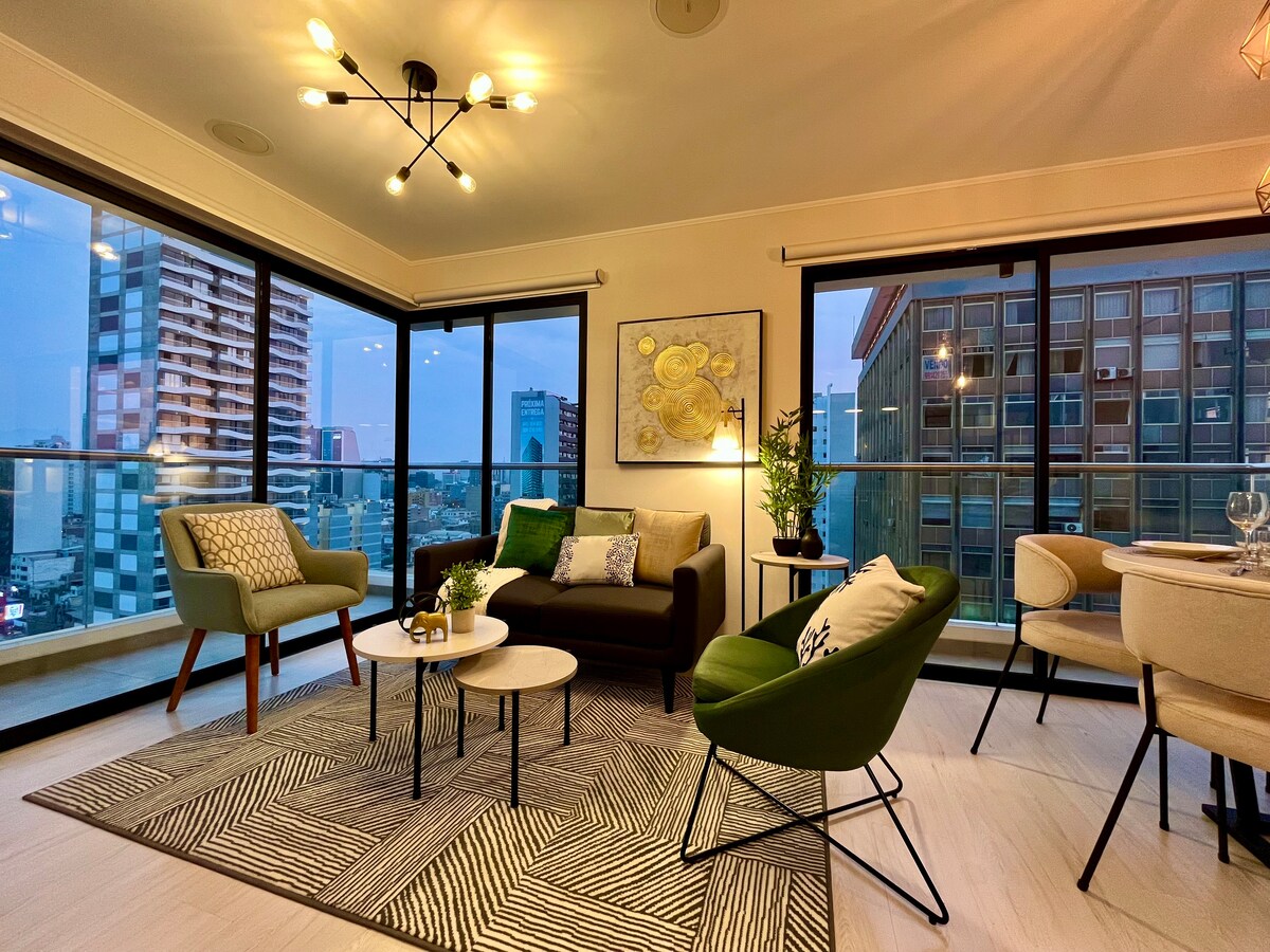 Live Lima from the 20th floor with stunning views! 🛏️ KING bed 📺 65" TV 🛋️ Comfy sofa 🍳 Fully equipped kitchen 🏊 Pool, 🔥 BBQ, and 🍸 Lounge Bar (subject to availability) 🚗 Parking for USD 8/night (subject to availability) 🧳 Store luggage before check-in or after check-out 📍 Prime location between Miraflores, San Isidro, and Surquillo 🌟 With a 4.96 rating and Superhost status, I offer you a comfortable and safe stay. 📅 Book now and enjoy Lima from the top, with style and comfort!