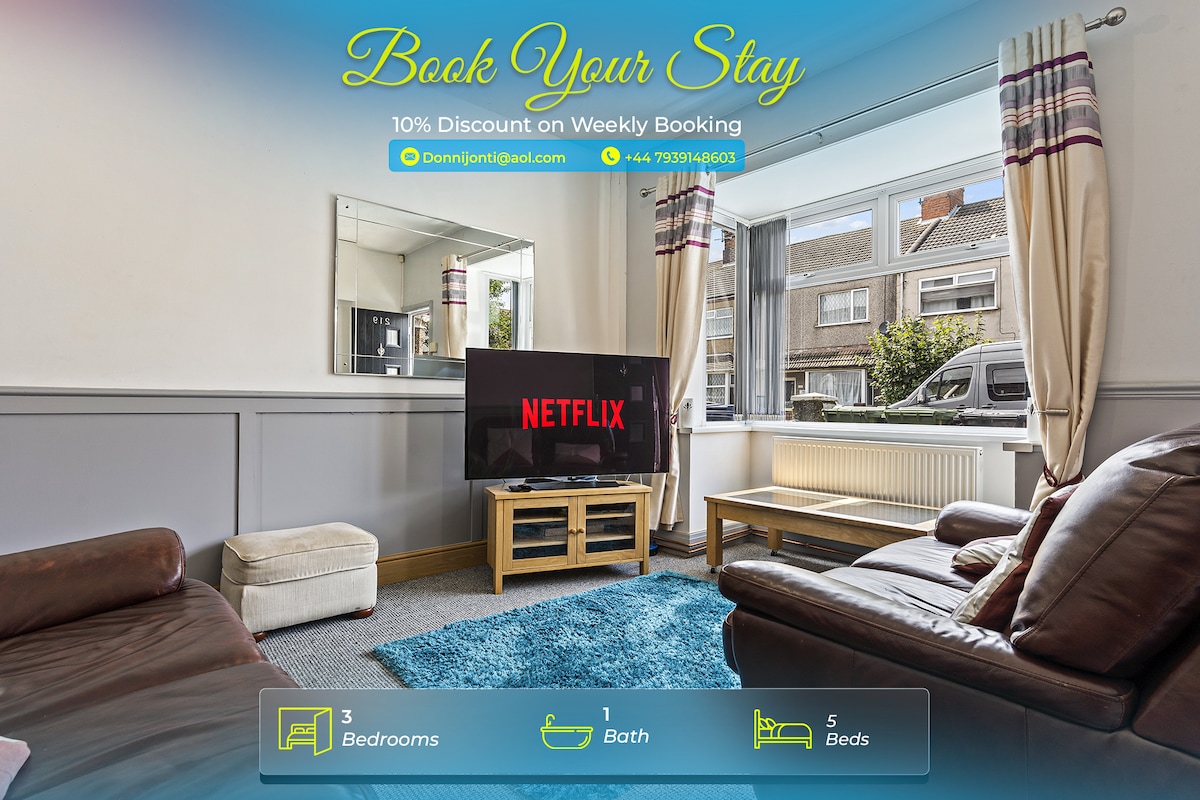 Grimsby – Βραχυπρόθεσμη διαμονή | Ευρύχωρο σπίτι 3 υπνοδωματίων | Χωρητικότητα 7 ατόμων