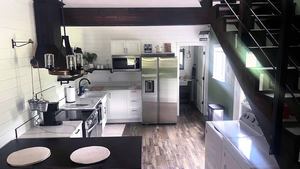 Welcome to our charming boho-inspired Grain Bin Cabin, the Highland is ideal for 2-3 adults or 2 adults and 2 smaller children. Upstairs, you'll find a comfortable king bed in the loft, while downstairs features a cozy futon in the main living space. The full kitchen is equipped with everything you need. Full Bath with a walk-in shower downstairs. Experience a serene countryside getaway with breathtaking sunsets and peaceful surroundings, just moments away from Versailles.