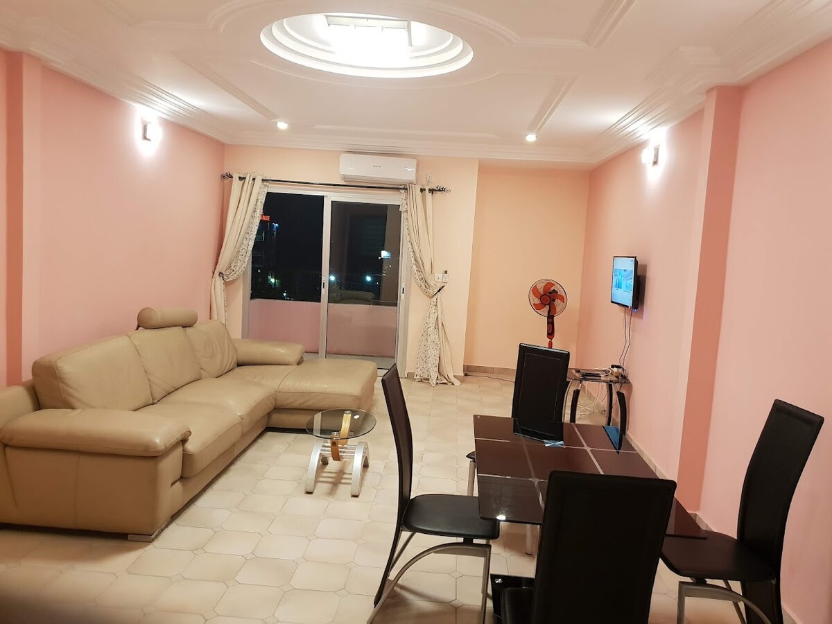 Ce logement est hyper propre, climatisé et nouvellement aménagé. Ceci vous permettra de vous sentir comme chez vous. L'appartement est situé à quelques mètres d'un supermarché de renommée, facilitant vos achats. Une dame de ménage est mise à votre disposition éliminant vos soucis de tâches ménagères.