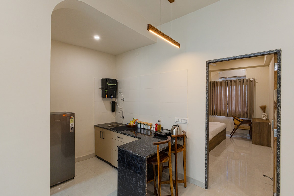 Bring the whole friends & family to this great place with lots of room for fun - All large rooms equipped with 55” inch TV. - Spacious, clean and beautifully furnished interiors - One Room with private Swimming Pool of 225 sqft - Fast Wi-Fi & Smart TV - Fully equipped kitchen-All essentials - 24/7 hot water & air conditioning - Private balcony - 2 car parking - Bathroom essentials- Biotique - EV charge ₹ 1200 Perfect for Couples & families looking for a stylish, peaceful, & well-connected stay
