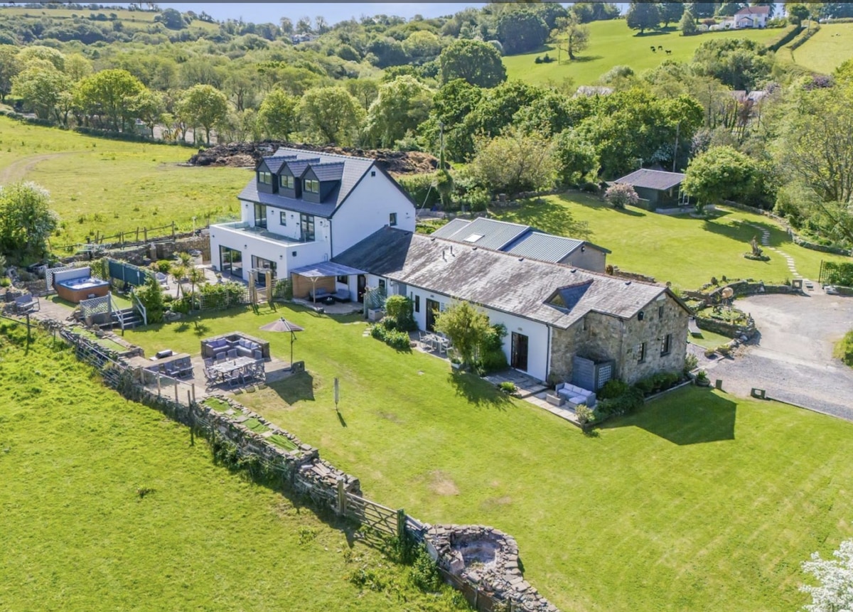Most 5 Star reviews on Gower! Surrounded by sea and country views. Wood fired hot tub for star gazing and relaxing. Gated, totally private, patio garden area fully fenced.Central heating, Fire Woodburner, Pet friendly. 5 min walk to King Arthur Hotel and Award Winning Restaurant, gastro pub. Luxury king size bed. Perfect for sea and sand beach holidays, surfing, walking, cycling and chilling. Reynoldston is the heart of Gower. Rhossili, Three Cliffs Bay, Mumbles.