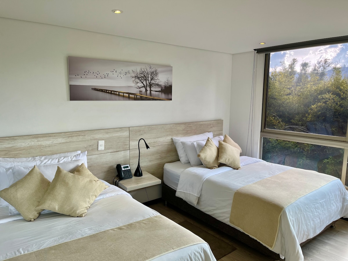 Το μεγαλύτερο διαμέρισμα στο συγκρότημα MG Casagrande Hotel, ιδανικό για επισκέπτες που εκτιμούν τον χώρο και την άνεση (όχι στούντιο ή σοφίτα). Βρίσκεται στην καρδιά του Llanogrande, με υπηρεσία καθαρισμού σε στυλ ξενοδοχείου, ιδιωτικό χώρο στάθμευσης και πρόσβαση σε θερμαινόμενη πισίνα, τζακούζι, σάουνα, χαμάμ και γυμναστήριο. Μόλις 700 μέτρα από το Jardines de Llanogrande και το εμπορικό κέντρο Llanogrande, κοντά σε κορυφαία εστιατόρια και μπαρ. Κοντά στο Γκουαταπέ και το Ελ Πενιόλ, 20 λεπτά από το Μεντεγίν και 8 λεπτά από το αεροδρόμιο JMC.