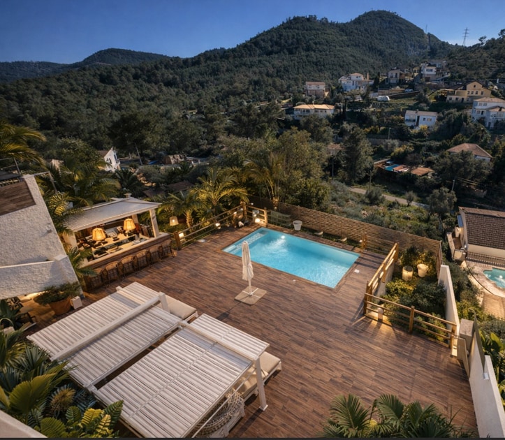 La villa ofrece vistas panorámicas, confort y privacidad total, a sólo 10 min. de Sitges y 40 min. de Barcelona. Es ideal para familias o grupos de amigos que aprecien la tranquilidad y belleza del entorno. Tiene piscina privada con amplia zona de relax, 4 terrazas con distintas orientaciones, aire acondicionado, calefacción, BBQ, y un Chill-Out estilo ibicenco. Todo en ella está pensado para relajarse, disfrutar y desconectar.