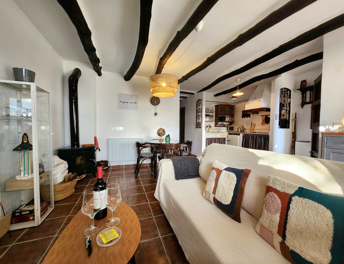 Casa acogedora en un tranquilo y bonito entorno rural de montaña en Granada. Ubicada en un pequeño pueblo junto al Parque Natural de Sierra Nevada, a 25 min de Granada, 20 min de La Alpujarra y 25 min de la playa. La casa tiene dos plantas y un patio exterior con pequeña piscina, exclusivo para ti. Planta de abajo: distribución abierta con salón, comedor, cocina, pequeño aseo y patio. Planta superior: dormitorios y baño completo. Rutas de senderismo a 5 min a pie desde el alojamiento.