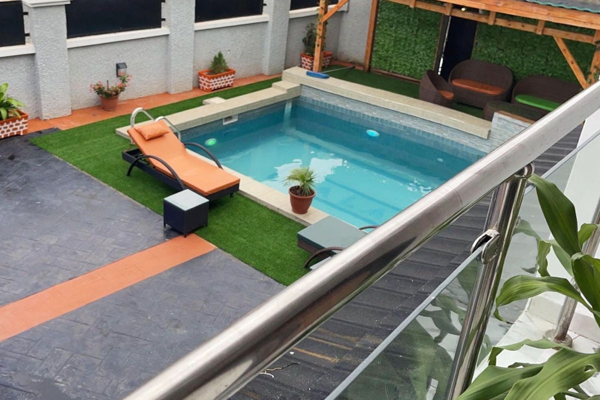 Ζήστε την πολυτέλεια σε αυτό το κομψό διαμέρισμα 3 υπνοδωματίων με ιδιωτικά μπάνια και κομψούς εσωτερικούς χώρους. Μόλις 5 λεπτά από το αεροδρόμιο του Λάγος και 3 λεπτά από το Ikeja City Mall. Απολαύστε γρήγορο WiFi 5ης γενιάς, έξυπνη τηλεόραση, κλιματισμό, πλήρως εξοπλισμένη κουζίνα, πλυντήριο/στεγνωτήριο και ρεύμα 24 ώρες το 24-ωρο σε ένα περιφραγμένο κτήμα με ομοιόμορφη ασφάλεια. Ιδανικό για οικογένειες, ομάδες ή επαγγελματίες ταξιδιώτες. Check-in χωρίς παρουσία οικοδεσπότη και επαγγελματική διαχείριση για μια απρόσκοπτη διαμονή.