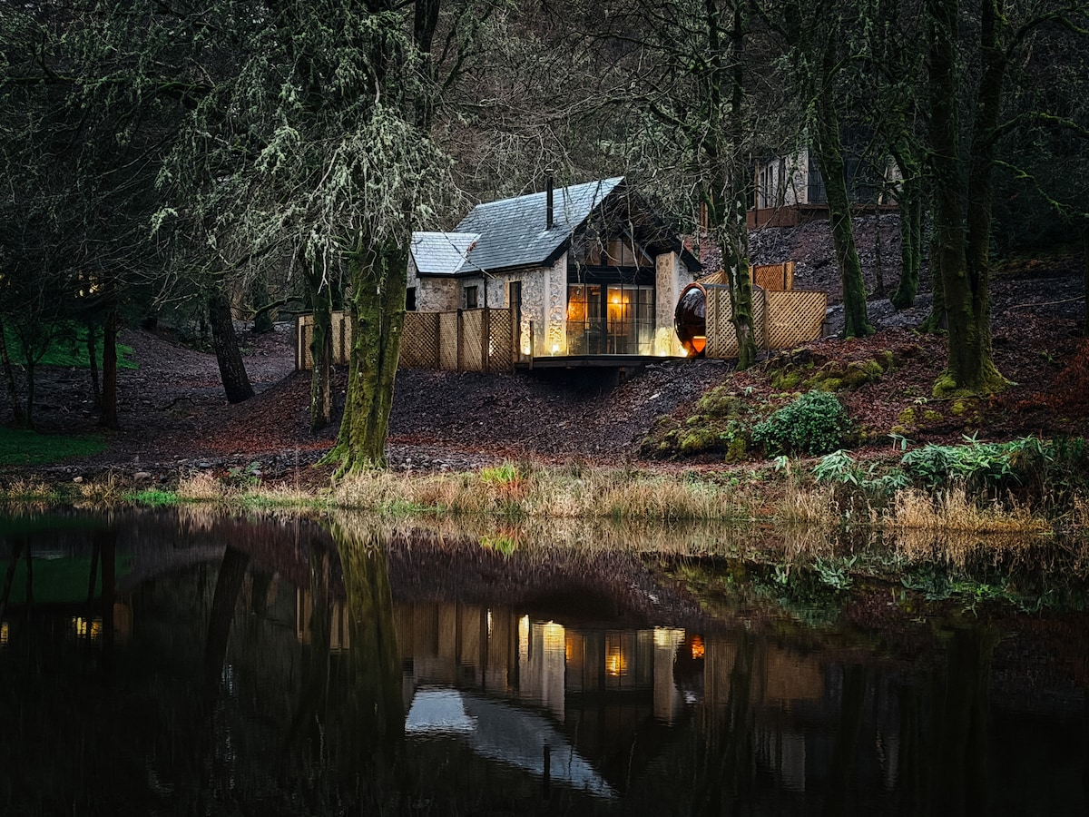 Watermill Nook is set on the grounds of our charming former working Listed Watermill and is a romantic, cosy cabin ideal for guests who want to relax and unwind. The beautiful, fairy lit, private woodland garden set high above the River Mar is a special place in which to immerse yourself in nature, birdsong and the blissful sounds of the babbling river. As dusk falls, cosy up around the firepit or light the cabin wood burner, planning your next adventure exploring fabulous Loch Lomond.