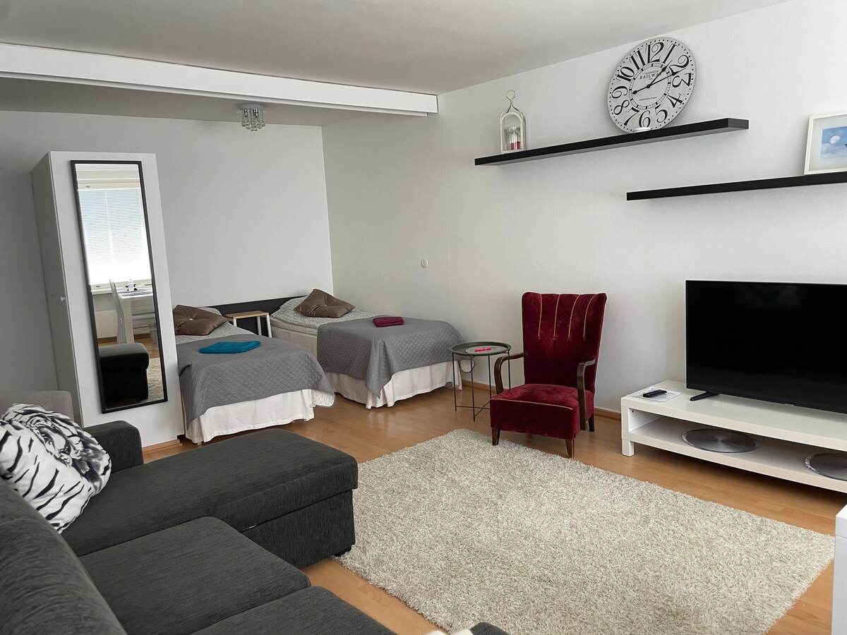 Όμορφο και άνετο στούντιο στο Sarvvik, κοντά στη λίμνη Finnträsk, πλήρως εξοπλισμένο με μπαλκόνι. Το διαμέρισμα διαθέτει ένα διπλό κρεβάτι πλάτους 140 εκ. και μπορείτε να βάλετε ένα επιπλέον στρώμα ή μια κούνια στο πάτωμα. Το διαμέρισμα διαθέτει ειδική δωρεάν θέση στάθμευσης για τους χρήστες αυτοκινήτων κοντά στην είσοδο. Ο εξοπλισμός περιλαμβάνει επίσης γρήγορο Wi-Fi, τηλεόραση επίπεδης οθόνης 50"και ασύρματο ηχοσύστημα. Από το μπροστινό μέρος του σπιτιού, μπορείτε να πάρετε το λεωφορείο για τον σταθμό του μετρό Matinkylä/Iso Omena σε 13 λεπτά.