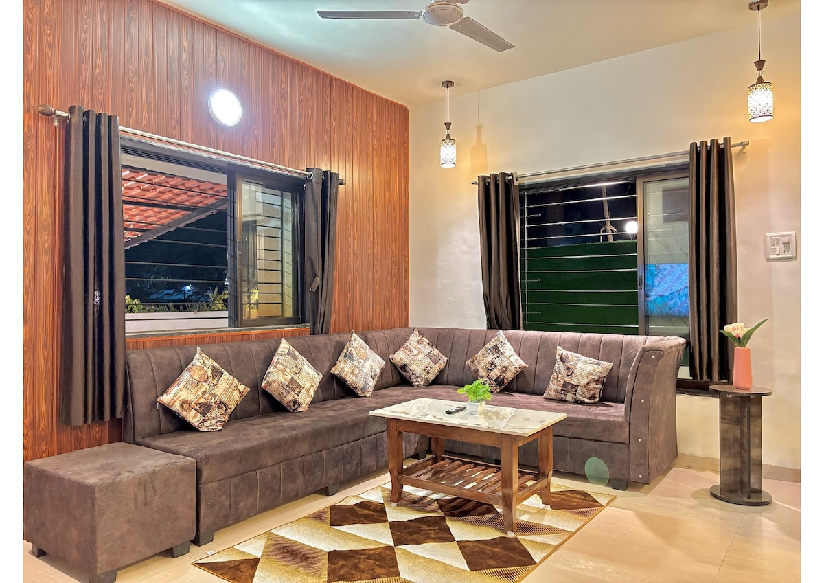 10 λεπτά με το αυτοκίνητο από την έξοδο Lonavala του αυτοκινητόδρομου Expressway, αλλά μακριά από τη φασαρία. Το σπίτι βρίσκεται κοντά στον ναό Swami Samarth. Πρόσφατα ανακαινισμένο με 2 κρεβάτια, τεράστιο σαλόνι, 3 μπάνια και με διαρρύθμιση ύπνου για 6 άτομα. Απολαύστε τη διαμονή σας με μια τεράστια 🏊♀️ πισίνα Ένας καλός εξωτερικός χώρος για να χαλαρώσετε και να απολαύσετε το μπάρμπεκιου/φαγητό και ποτά σας. Η κουζίνα είναι εξοπλισμένη με βασικές παροχές για όσους προτιμούν να μαγειρεύουν μόνοι τους. Τα περισσότερα ξενοδοχεία παραδίδουν στην ιδιοκτησία