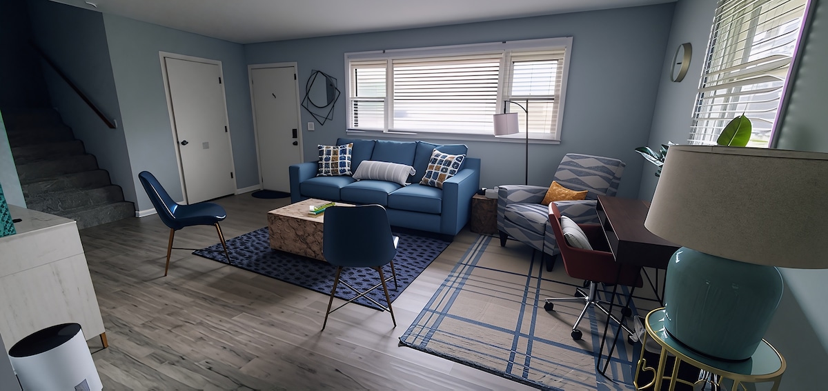 Αυτό το duplex είναι η ιδανική στάση για έναν κουρασμένο ταξιδιώτη! Κοιμηθείτε σε ένα μεγάλο υπέρδιπλο κρεβάτι ή σε ένα ρυθμιζόμενο διπλό κρεβάτι! Γκαράζ για στάθμευση. Αυτός ο χώρος είναι πλήρως προσβάσιμος για άτομα με αναπηρία. Ένα επίπεδο, με ξύλινα πατώματα σε όλο το κατάλυμα. Ντουζιέρα με λαβές στήριξης. Υπερυψωμένη τουαλέτα. Για την άνεση του σαλονιού, παρέχουμε μια πολυθρόνα μασάζ, έναν ηλεκτρικό ανακλινόμενο καναπέ, ένα σύστημα Xbox Game και μια τηλεόραση με premium κανάλια στο Roku! Η κουζίνα είναι πολύ ανοιχτή και πλήρως εξοπλισμένη. 10 λεπτά από το KU & το κέντρο της πόλης 5 λεπτά από το i-70.