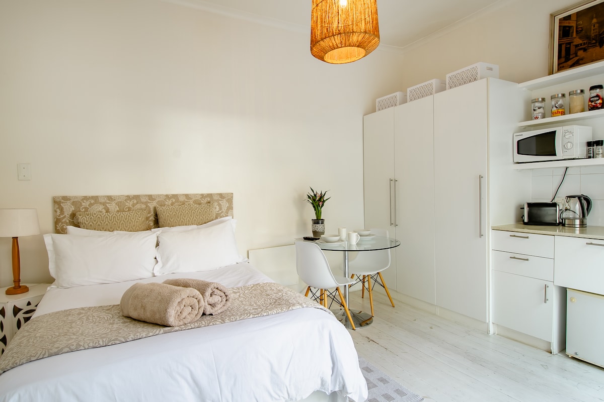 Το "Studio On Benning Drive Kommetjie" είναι ένα καταφύγιο ζευγαριών που βρίσκεται 100 μέτρα από το Λονγκ Μπιτς. Απολαύστε βόλτες στην παραλία, ορεινά μονοπάτια, κολύμπι, σέρφινγκ και μια επιλογή από τοπικά εστιατόρια και ντελικατέσεν. Το ιδιωτικό στούντιο με δυνατότητα προετοιμασίας γευμάτων βρίσκεται στον πίσω κήπο του οικογενειακού μας σπιτιού, με μια εντελώς ιδιωτική και ξεχωριστή είσοδο, προσφέροντας σύγχρονη διαβίωση, ιδιωτική βεράντα, εσωτερική και εξωτερική ντουζιέρα. Το στούντιο ενιαίας διαρρύθμισης διαθέτει ένα διπλό κρεβάτι, μοντέρνα μικρή κουζίνα με συσκευές υψηλών προδιαγραφών και ιδιωτικό μπάνιο.