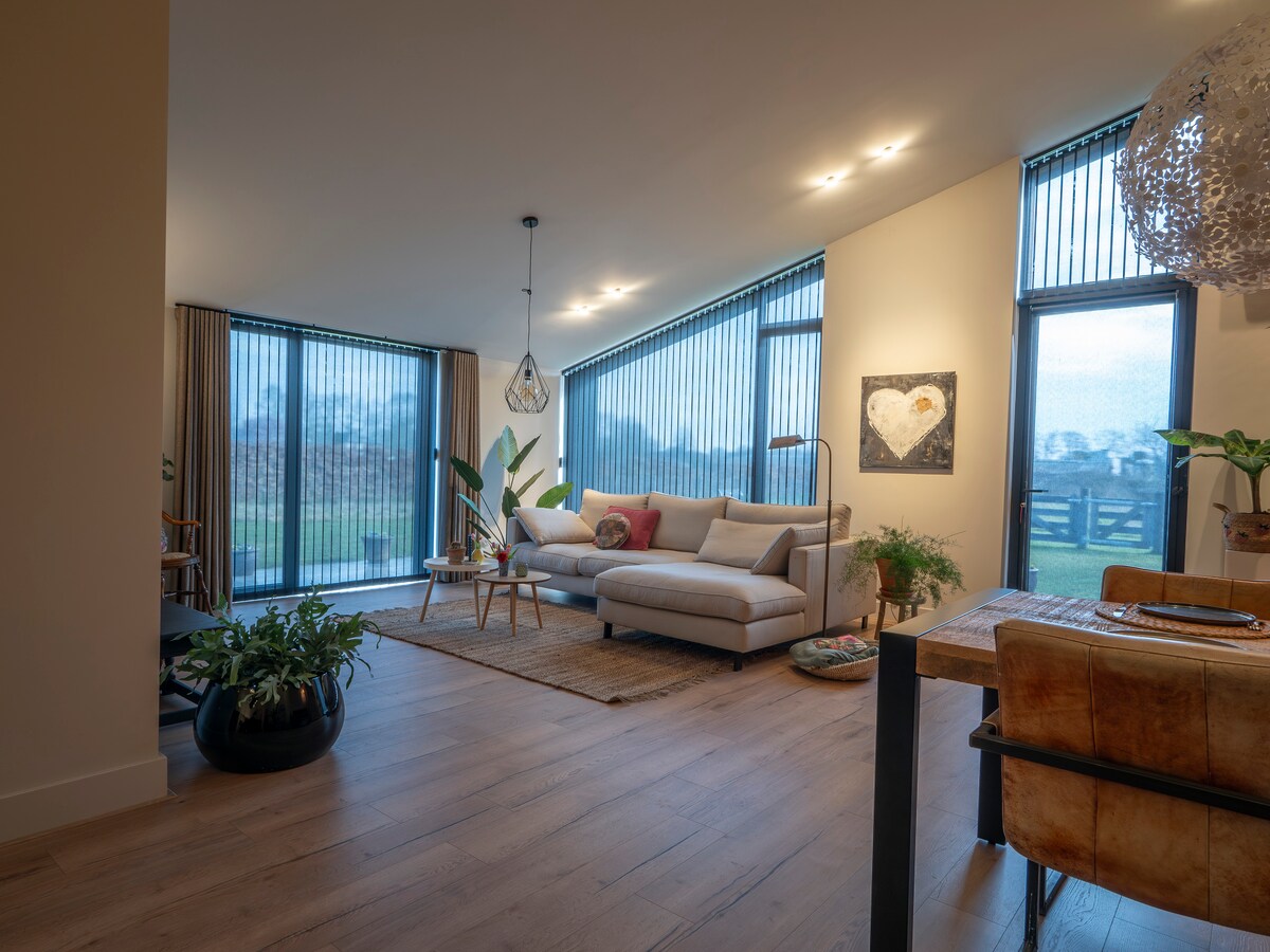 Ένα διαμέρισμα έως 40 τ.μ.! Μπάνιο: νιπτήρας, ντους και τζακούζι 2 ατόμων Καθιστικό: κλιματισμός, καναπές-κρεβάτι με τηλεόραση 55 ιντσών SMART TV με NLziet, Netflix και Chromecast Υπνοδωμάτιο: ηλεκτρικά ρυθμιζόμενο κρεβάτι με βάση boxspring μεγέθους king, SMART TV 55 ιντσών Κουζίνα / τραπεζαρία: τραπέζι 4 ατόμων, μηχανή εσπρέσο, πλήρως εξοπλισμένη κουζίνα: φούρνος, φούρνος μικροκυμάτων, ψυγείο, εστίες και πλυντήριο πιάτων κλπ. Πρωινό: επιπλέον χρέωση 12 ευρώ ανά άτομο ανά διανυκτέρευση Ιδιωτική σάουνα: 12,50 ευρώ ανά άτομο ανά φορά διάρκειας 90 λεπτών Ιδιωτική βεράντα στην πίσω αυλή