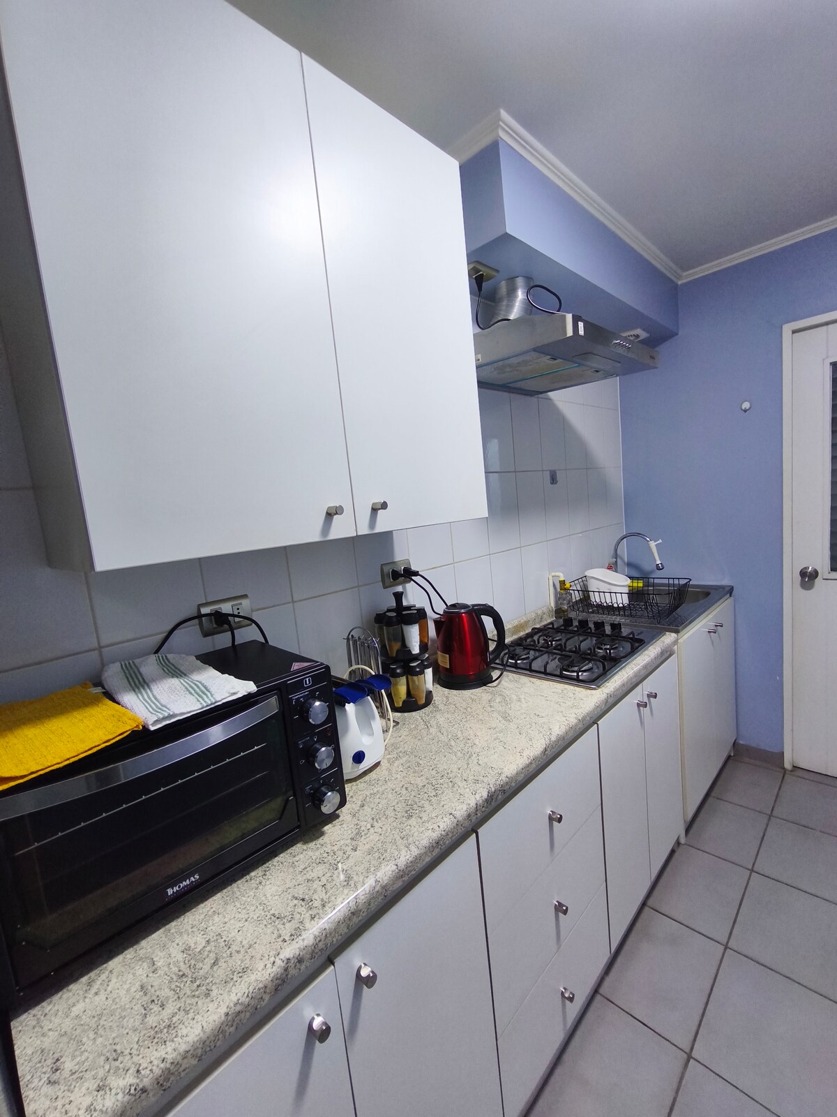 Disfruta de la sencillez de este alojamiento tranquilo y céntrico, full equipado, amplio, ideal para descansar o trabajar, a menos de una cuadra de supermercados (unimarc, santa Isabel y tottus), clínica Los Andes, colegio, strip center. Cuenta con piscina, quincho, terraza, áreas para deporte, etc. Muy cómodo y acogedor. Condominio con guardia 24/7. Cuenta con terraza en el balcón para disfrutar del atardecer. Con protección. Incluye sábanas y toallas para cada huesped.
