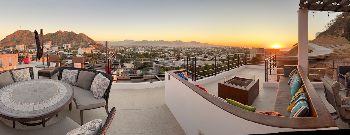 Ένα διασκεδαστικό πλήρες σπίτι 4 υπνοδωματίων έτοιμο για τις επόμενες διακοπές σας στο Κάμπο! Με τη δική του πισίνα και τζακούζι και εκπληκτική θέα από τον δεύτερο όροφο, δεν θα θέλετε ποτέ να φύγετε από την ιδιοκτησία. Είναι σε μικρή απόσταση με το αυτοκίνητο από τη μαρίνα Cabo San Lucas και το κέντρο της πόλης, με ένα παντοπωλείο και ένα Costco κοντά. Ιδανικό για οικογένειες ή παρέες φίλων, αυτό το σπίτι προσφέρει όλα όσα χρειάζεστε για να απολαύσετε το Cabo στο έπακρο!