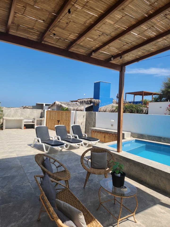 ✨ This is more than a stay – it's a true escape. Whether you're a family, a couple looking for romance, a small group of friends, or a digital nomad seeking inspiration by the sea, this is your slice of paradise. 🌴 Beach house in Vichayito, exclusive beach 15min from Máncora 🏖️ Ocean/sunset views 🏊♂️ Small private pool | ❄️ A/C | 💻 Fast Starlink WiFi 🍳 Outdoor kitchen + BBQ | Private garden 🛏️ 3 beds + sofa bed | Hot water | Washer | 📺 DirecTV | Solar power 🧑🔧 Personalized service