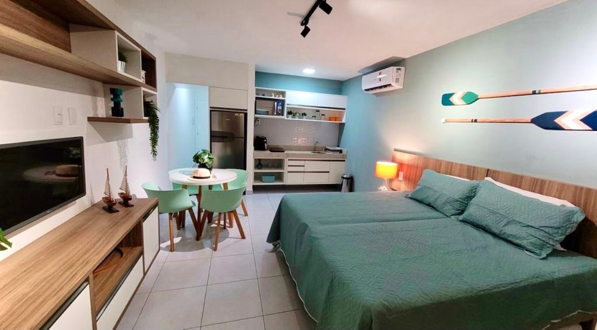 Επικοινωνήστε μαζί μας!! Διαμέρισμα που βρίσκεται στην καρδιά της Pipa, στην κεντρική λεωφόρο! Ασφαλές και ήσυχο συγκρότημα, με δωρεάν ιδιωτικό χώρο στάθμευσης. Διαθέτει: • 1 υπνοδωμάτιο με κρεβάτι king size και κλιματισμό • Μπάνιο με ζεστό ντους και πιστολάκι μαλλιών • Σαλόνι με καναπέ-κρεβάτι για 2 άτομα και τηλεόραση 46 ιντσών • Κουζίνα με φούρνο, ψυγείο, φούρνο μικροκυμάτων, καφετιέρα και τα απαραίτητα Για τη μεγαλύτερη άνεσή σας, το κατάλυμα παρέχει πετσέτες και κλινοσκεπάσματα. Η πρόσβαση σε Wi-Fi 200 mega είναι δωρεάν.