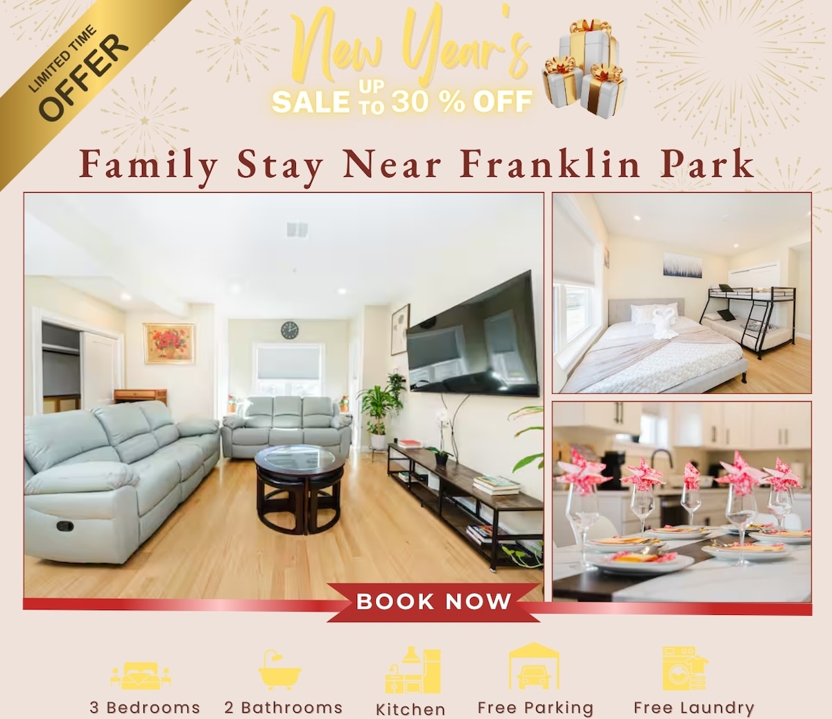 60/2-3BR Boston | Xmas Family Stay Franklin Park