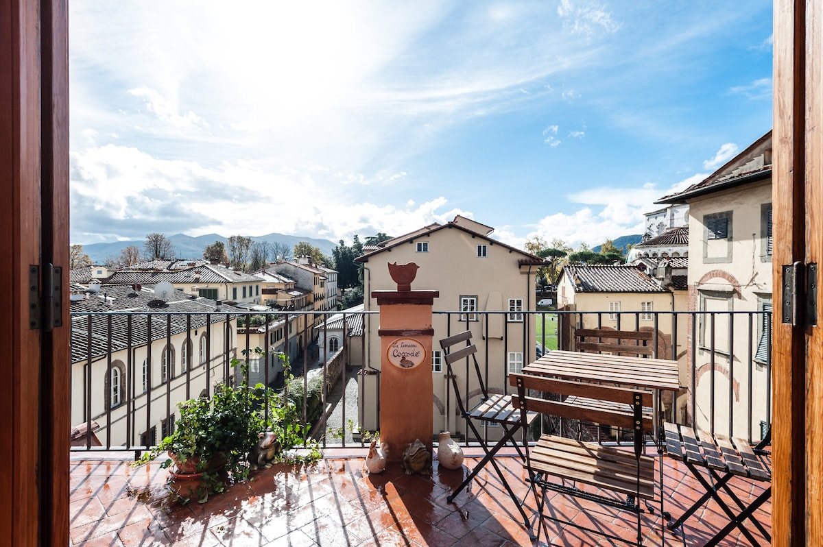 Διαμέρισμα στο ιστορικό κέντρο (εντός των τειχών), πολύ φωτεινό, φιλόξενο και άνετο. Βρίσκεται στον δεύτερο όροφο, σε δύο επίπεδα, εξοπλισμένο με μεγάλους χώρους (υπνοδωμάτιο με διπλό κρεβάτι, υπνοδωμάτιο με δύο μονά κρεβάτια, σαλόνι με καναπέ-κρεβάτι, δύο μπάνια, κουζίνα, καθιστικό (με πολλά παιχνίδια) και μεγάλη βεράντα. Ένα εξαιρετικό σημείο εκκίνησης για να επισκεφτείτε όλα τα θαύματα της Λούκκα ! Θα χαρούμε να σας προσφέρουμε πρωινό για την πρώτη ημέρα της διαμονής σας!