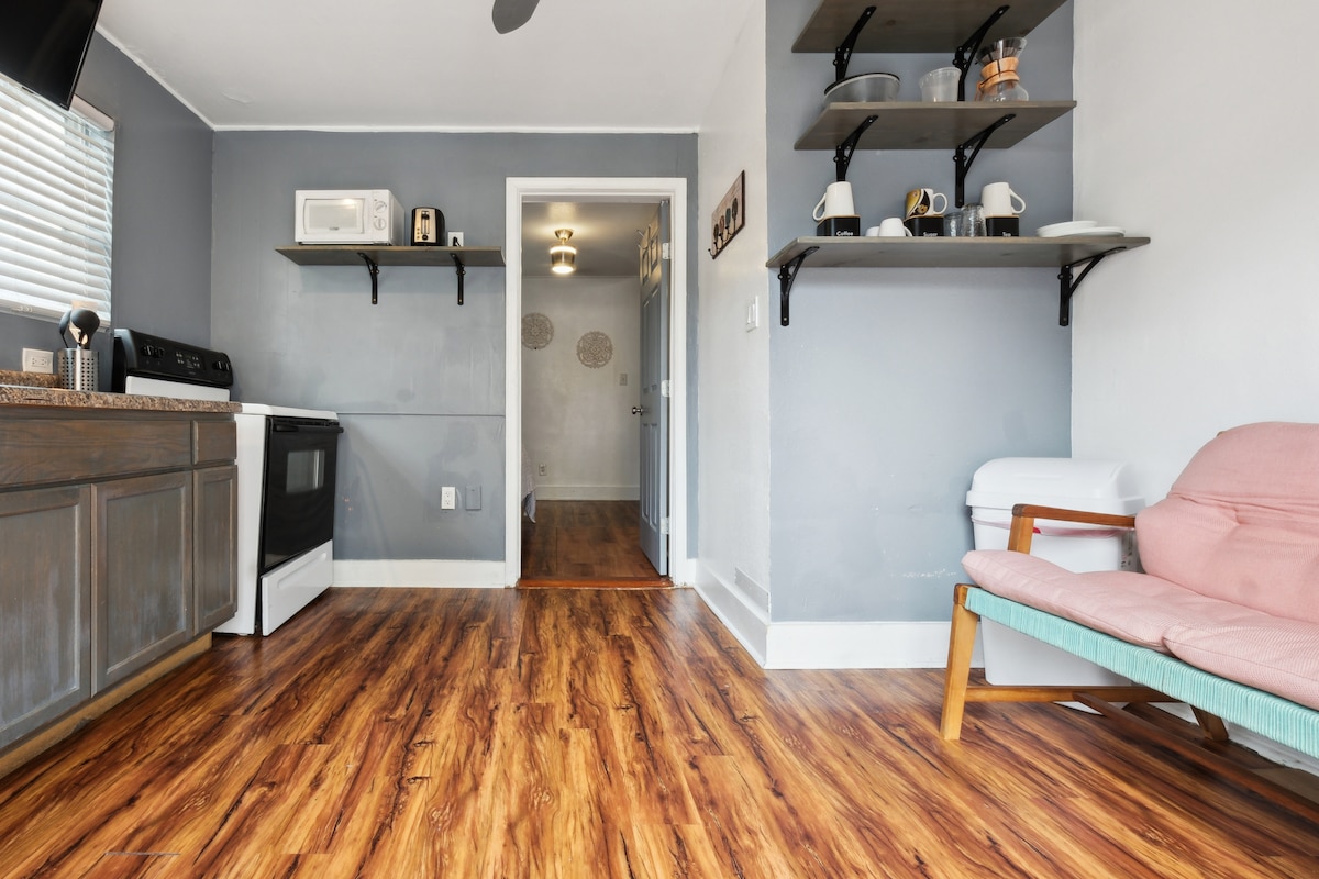 Make some memories at this unique and family-friendly cottage. It has been completely updated. This beautiful 2 bedroom 1 bath home sits on a double lot. The back yard is completely fenced and is shaded by beautiful 100 year old oak trees. I also allow guest to bring a pet with a $50 fee. Pet should weigh under 30 pounds. Please send me a message if you want me to make any special considerations. Just relax and enjoy this quiet suburban neighborhood.