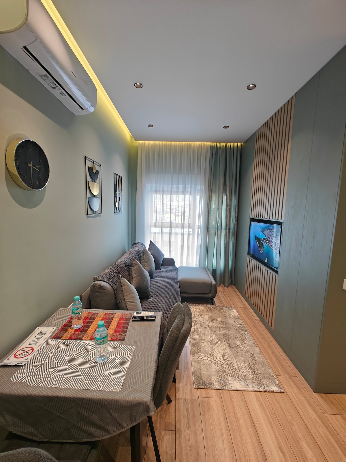 Απολαύστε μια κομψή εμπειρία σε αυτό το κεντρικό κτίριο. Το κτίριο του 2021 και ένα νέο ανακαινισμένο διαμέρισμα 10 λεπτά με τα πόδια από το κέντρο της πόλης και 5 λεπτά από το νέο παζάρι. Πολύ μοντέρνο και άνετο σε μια ήσυχη περιοχή, αλλά πολύ προσβάσιμη με τα πάντα!