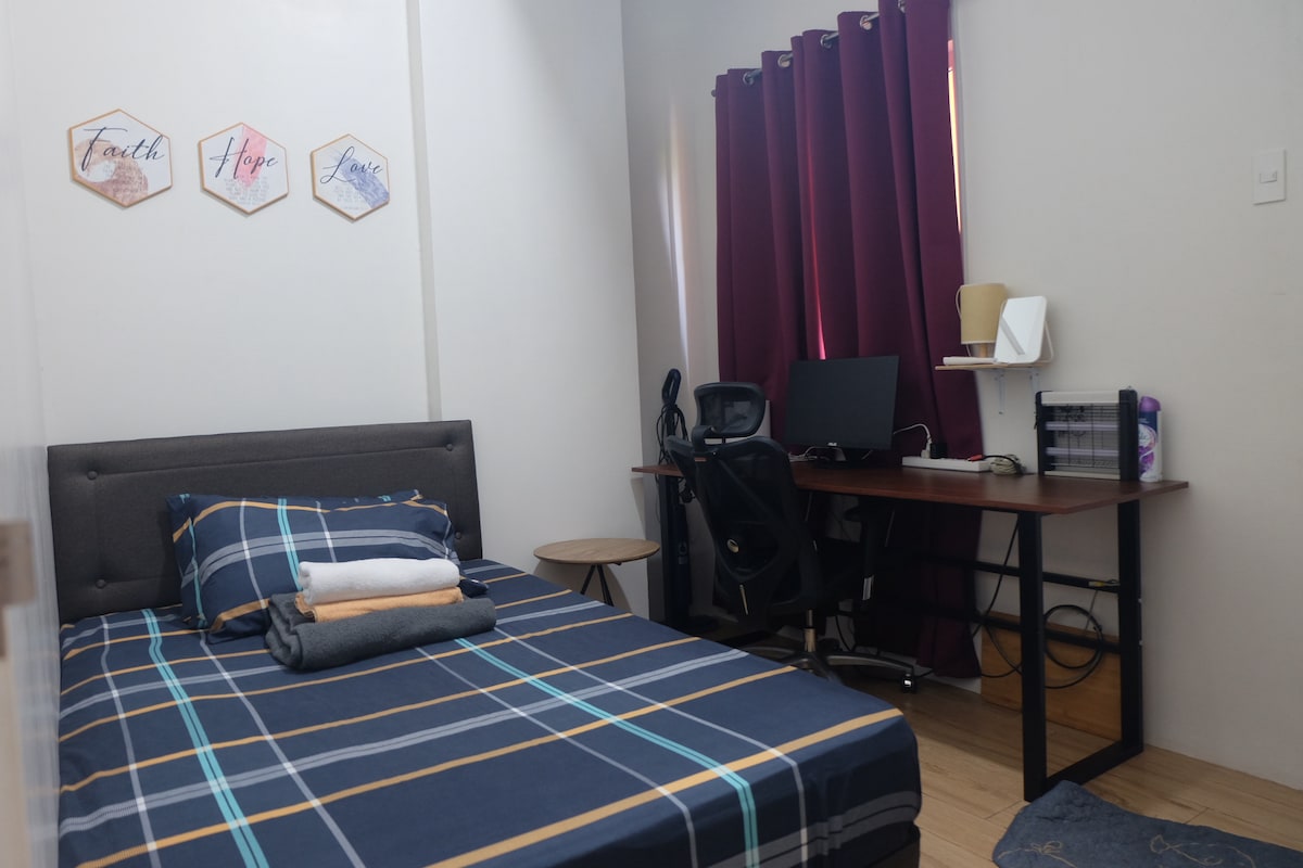 Στόχος μας είναι να κάνουμε τη διαμονή σας όσο πιο άνετη γίνεται. Το διαμέρισμά μας με 1 υπνοδωμάτιο διαθέτει όλα όσα χρειάζεστε για μια χαλαρωτική απόδραση. Διαθέτει κουζίνα εξοπλισμένη με βασικά μαγειρικά σκεύη. Το μπάνιο είναι επίσης εξοπλισμένο με προϊόντα περιποίησης. Έχετε ολόκληρο τον χώρο στη διάθεσή σας και πρόσβαση στην ταράτσα. Υπάρχει επίσης παιδική χαρά. Θα μείνετε κοντά στο κέντρο της πόλης. Θα είστε κοντά σε καφετέριες, εστιατόρια, τον κεντρικό σταθμό λεωφορείων, το SM Naga και τον μητροπολιτικό καθεδρικό ναό. Το γρήγορο WiFi είναι πλέον διαθέσιμο.