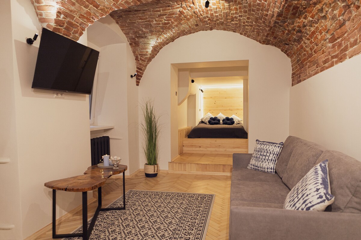 Το διαμέρισμα βρίσκεται στο ιστορικό κέντρο της πόλης και μέχρι 3 άτομα μπορούν να βρουν έναν χώρο σε αυτό. Ο εξοπλισμός της κουζίνας είναι MW, επαγωγική κουζίνα, ηλεκτρικός βραστήρας, πλυντήριο ρούχων, ηλεκτρικό θερμοσίφωνα, ψυγείο, τσάι, καφές, ζάχαρη, αλάτι και πιπέρι, φίλτρο για πόσιμο νερό. Οι επισκέπτες μπορούν να χρησιμοποιήσουν δωρεάν Wi-Fi, τηλεόραση LED, στεγνωτήρα μαλλιών, σίδερο, σιδερώστρα, ανεμιστήρα δωματίου με χρονόμετρο και τρεις θέσεις στο ρεύμα. Οι επισκέπτες λαμβάνουν σετ μίας χρήσης: οδοντόκρεμα και οδοντόβουρτσα, αφρόλουτρα και σαμπουάν, σαπούνι.