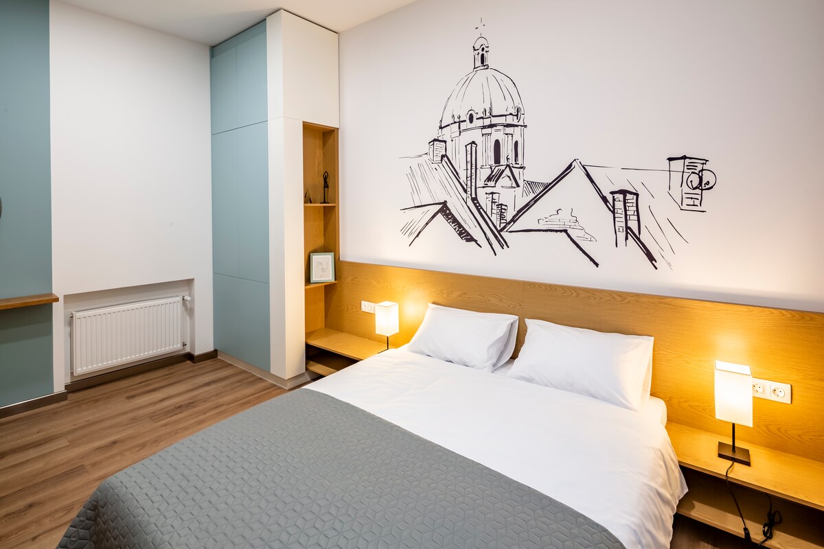 Το νέο διαμέρισμα στην καρδιά της πόλης που βρίσκεται σε έναν ήσυχο δρόμο θα σας επιτρέψει να χαλαρώσετε παρά τον θόρυβο έξω από την πόρτα. Το δωμάτιο διαθέτει όλα όσα χρειάζεστε ακόμη και για τη μακροχρόνια διαμονή σας: εξοπλισμένη κουζίνα, ψυγείο, επαγωγική εστία και όλα όσα χρειάζεστε για το μαγείρεμα, πλυντήριο ρούχων με στεγνωτήριο, ίντερνετ και έξυπνη τηλεόραση. Κοντά σε εστιατόρια, χώρους διασκέδασης, καθεδρικό ναό, ενυδρείο. Καλώς ήρθατε🩵💛