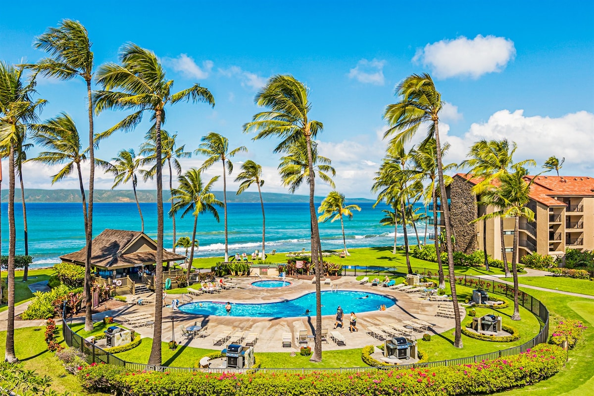 🌅Περπατήστε από το διαμέρισμά μας κατευθείαν στην παραλία! 🏖️ Εξαιρετική τοποθεσία - μείνετε κοντά στα πιο δημοφιλή αξιοθέατα του Μάουι! Καταστήματα και εστιατόρια σε απόσταση μικρότερη από 1 μίλι! Το διαμέρισμά μας στον τελευταίο όροφο, με θέμα το μπαμπού, είναι ανακαινισμένο και ΜΠΡΟΣΤΆ ΣΤΟΝ ΩΚΕΑΝΌ! Δείτε το ηλιοβασίλεμα από το μπαλκόνι μας! Έχουμε κλιματισμό σε κάθε δωμάτιο, πλυντήριο και μεγάλη κουζίνα. Πρόσβαση με ασανσέρ! Σε κοντινή απόσταση από τα γήπεδα PICKLE BALL! Βραβευμένοι χώροι, μαζί με ΠΙΣΊΝΑ και ΥΔΡΟΜΑΣΆΖ! Χώρος στάθμευσης για 2+ αυτοκίνητα. ❤️ Παρέχουμε περισσότερα από τον μέσο όρο των οικοδεσποτών - ρωτήστε μας γι' αυτό!