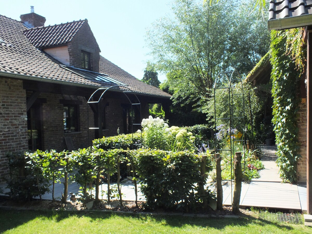 The holiday home Jardin du Peintre is an old art workshop converted to a charming holiday home located near an old and quiet alley near the castle Vilain XIII in Leut. Sleeping accommodation for 4 pers. Option 2 extra persons (25€/d/p) see room description Address: Moleneindstraat 45, 3630 Leut (Maasmechelen) More information: The housing is located centrally: - Nationaal Park Hoge Kempen (Connecterra): 2,4 km - Maaseik: 15 km - Maastricht: 20 km - Hasselt: 40 km - Aken: 50 km