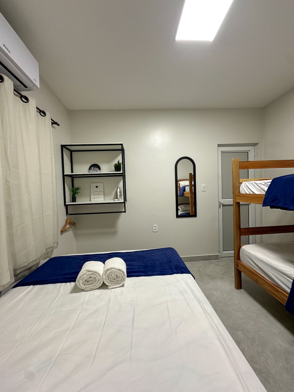 Acomodação confortável para até 5 pessoas, prática e muito bem localizada você estará a poucos minutos do centro, aeroporto e cercado por padarias, restaurantes, farmácias, sorveterias e muito mais O ambiente é completo e equipado para te receber com conforto: 🛏️ Cama aconchegante 📶 Wi-Fi de alta velocidade 🫧Máquina de lavar ❄️ Ar-condicionado ☕ Cozinha com utensílios 🧺 Toalhas e roupa de cama 🧼 Ferro de passar disponível Tudo pensado para que você se sinta em casa