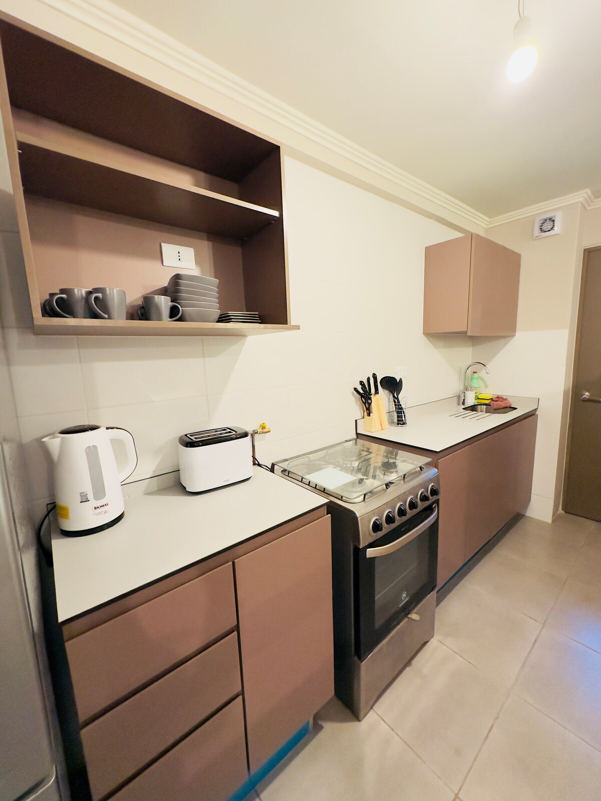 Απολαύστε την απλότητα αυτού του ήσυχου και κεντρικού καταλύματος. Λίγα βήματα από σουπερμάρκετ, εστιατόρια, εξαιρετική τοποθεσία και μετακίνηση από την πόρτα. Είναι πολυκατοικία με 24ωρη ασφάλεια. Διαμέρισμα με δύο υπνοδωμάτια και δύο μπάνια, κύριο υπνοδωμάτιο με ιδιωτικό μπάνιο, τα κρεβάτια είναι διπλά. Καθιστικό, πλήρως εξοπλισμένη κουζίνα με πλυντήριο ρούχων, στεγνωτήριο ρούχων. Εκτός από την κουζίνα, υπάρχει ηλεκτρικό φούρνο και φούρνο μικροκυμάτων, σετ κατσαρόλες, σερβίτσια για 4 άτομα. Επιπλέον, διαθέτει μια μεγάλη βεράντα.