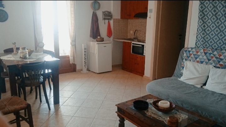 Enjoy your stay in a luxury & stylish apartment next to the sea. You will be provided with spacious, fully furnished and equipped facilities & up-to-date amenities, involving a kitchen, living room, dining room, two bedrooms, bathroom & a big balcony with a fantastic sea view. There is a private parking space available. The sea is under your feet, 15 meters from the house. It can accommodate up to 6 people conveniently.