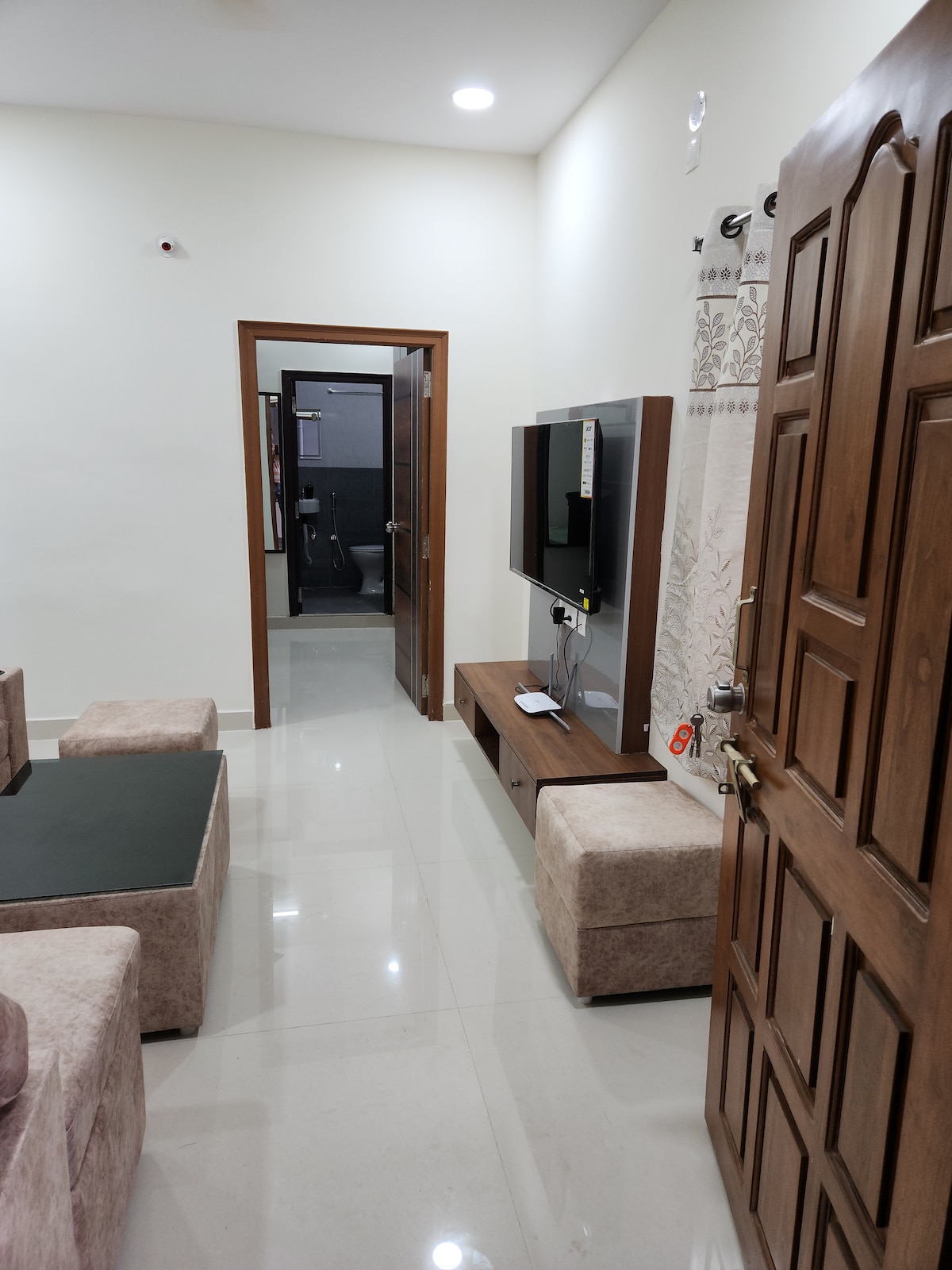 Welcome to our Stylish 3 BHK apartment, perfect for short or long stays. Enjoy 2 AC bedrooms with private baths, a cozy living room with a 43" Smart TV, high-speed WiFi, and an indoor swing. The kitchen is fully equipped with a gas stove, microwave, RO purifier, fridge, and utensils. Relax at the spacious dining table or read from our book collection. Located near Hitech City Metro, Rameshwaram Cafe (100m), US Visa Center (1km), Cable Bridge, IT hubs,