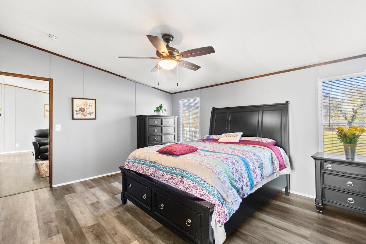 Ελάτε να κάνετε μια απόδραση στην εξοχή. Το σπίτι περιβάλλεται από έκταση και έχει μια περιοχή γύρω από το σπίτι για το/τα κατοικίδιό/ά σας. Δεν είναι περιφραγμένο, αλλά υπάρχει μια περιφραγμένη περιοχή 10x12. Υπάρχει μια λιμνούλα μπροστά από το σπίτι που είναι ανοιχτή για την αλιευτική σας απόλαυση (Blue Catfish and Crappie). Υπάρχει μια μεγάλη βεράντα μπροστά, ιδανική για να απολαύσετε την ανατολή ή το ηλιοβασίλεμα και να περάσετε χρόνο επιβραδύνοντας τους ρυθμούς της ζωής. Λίγα λεπτά από το κέντρο της πόλης και κοντά σε τοπικά αξιοθέατα. Παρέχεται wifi (hot spot) και Roku.