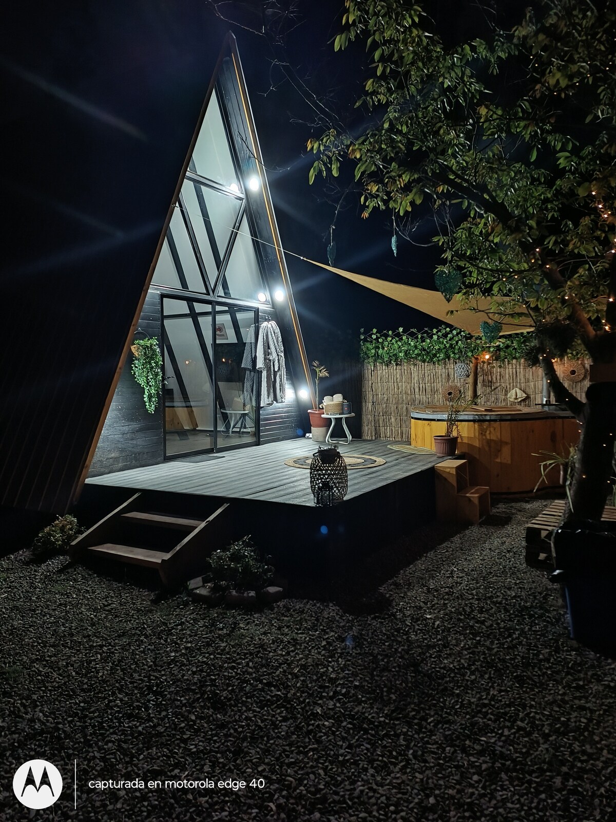 Escape to Tranquility in Our Cabin with Private Hot Tub in Pirque We invite you to discover tranquility at a cabin near Santiago. Located in Pirque, home to Chile's most iconic vineyards and just minutes away from the majestic Río Clarillo National Park, our cabin offers a modern retreat where relaxation takes the spotlight. Enjoy the privacy of your own oasis with a hot tub equipped with hydrotherapy. The cabin is designed to blend modern comfort with the natural charm of Pirque.