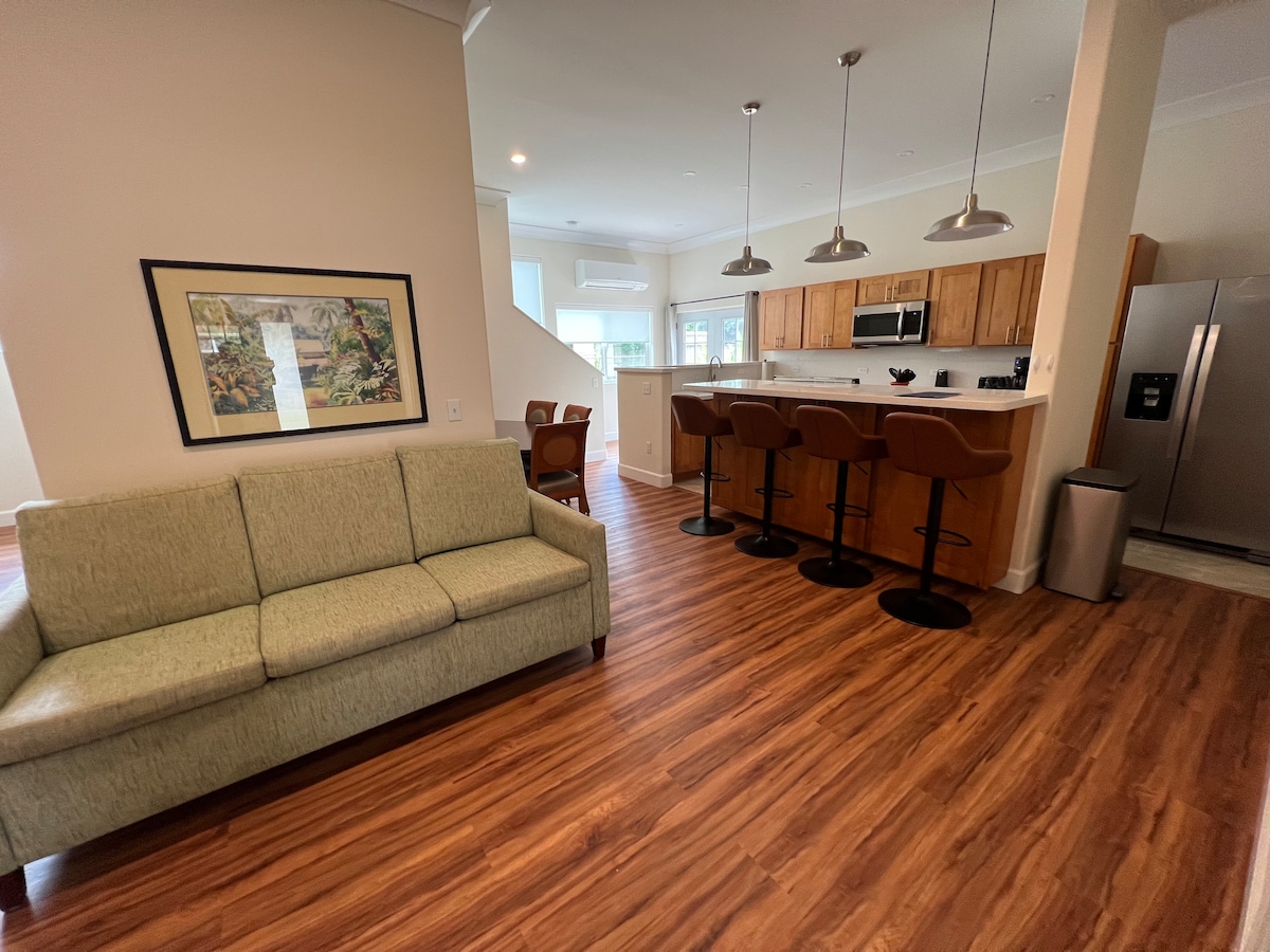 Aloha. Το σπίτι μας στο Haleʻiwa διαθέτει τρία υπνοδωμάτια (1 Cal king, 2 queens), κλιματισμό σε όλο το κατάλυμα και μια κουζίνα για γεύματα μαζί. Χαλαρώστε στους χώρους διαβίωσης, ξεπλυθείτε μετά την παραλία στο εξωτερικό ντους ή απολαύστε ήσυχα βράδια έξω. Λίγα βήματα από τα καταστήματα και την πόλη, το σπίτι μας είναι περιποιημένο και άνετο. Είτε επισκέπτεστε το σπίτι σας, είτε επανενώνεστε με την οικογένειά σας, είτε σηματοδοτείτε μια ξεχωριστή στιγμή, σας καλωσορίζουμε να νιώσετε σαν στο σπίτι σας εδώ στο Haleʻiwa. Η καταχώρηση συμμορφώνεται με όλους τους τοπικούς κανόνες προσωρινής διαμονής.
