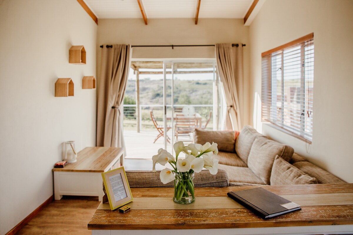 Welcome to our peaceful Stones Hill home, just 5km from town. Enjoy a sustainable stay with solar power and your own water supply, plus a spacious braai area, large garden, and pool. Inside is a full kitchen, cozy fireplace lounge, laundry, WiFi, Netflix, 3 bedrooms and 2 bathrooms. Please note: We have 3 resident cats, so the home may not suit guests with allergies.