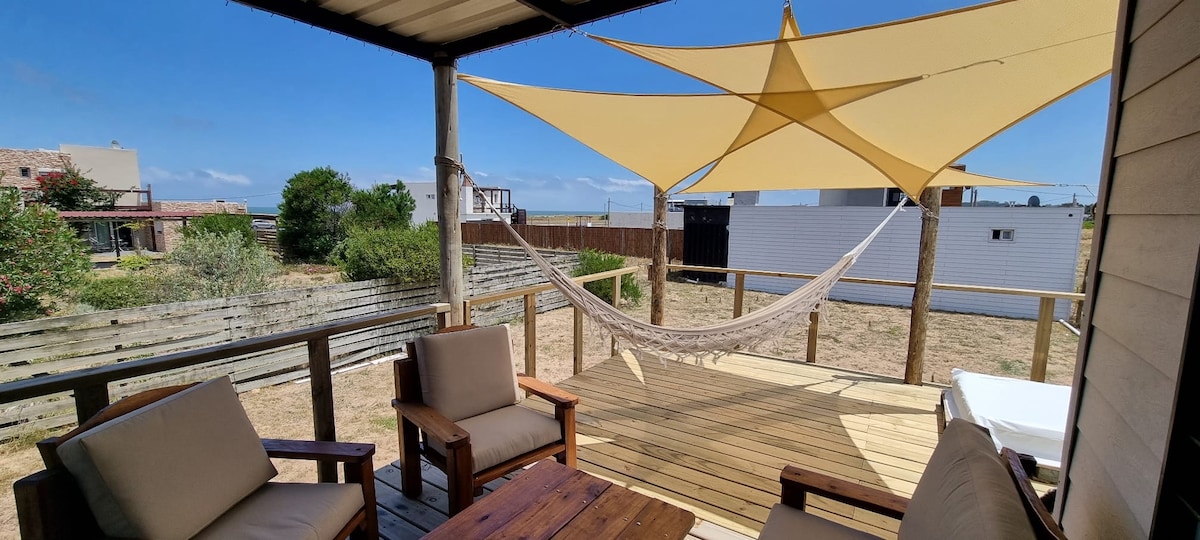 Βρείτε ξανά την επαφή με τη φύση με αυτήν τη μοναδική απόδραση. Το όμορφο τροποποιημένο εμπορευματοκιβώτιο 40 ποδών της Claudia και εμού βρίσκεται στην κορυφή ενός λόφου στη μοντέρνα γειτονιά "El Chorro", 800 μέτρα από μία από τις πιο όμορφες παραλίες της Πούντα ντελ Έστε με θέα στη θάλασσα. το υπνοδωμάτιο είναι επεκταμένο, οπότε έχει το σωστό μέγεθος για ένα διπλό κρεβάτι, η κουζίνα έχει όλα όσα χρειάζεστε. Το σαλόνι έχει ένα μονό κρεβάτι και μπορείτε να τραβήξετε ένα άλλο μονό κρεβάτι για να κοιμηθούν δύο άτομα. Έξω από την κουζίνα υπάρχει ένα αίθριο με ξαπλώστρες.