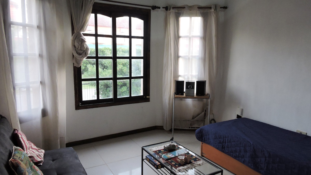 Τρία τετράγωνα από την παραλία, ξεχωριστό δωμάτιο με μπάνιο, γραφείο και ψυγείο, φούρνο μικροκυμάτων και κλιματισμό. Μπάρμπεκιου με τραπέζι και πάγκους στο αίθριο με υπέροχη θέα για αποκλειστική χρήση. Πολύ ωραίο περιβάλλον σε δημόσιο πάρκο με φαράγγι γλυκού νερού σε κατοικημένη γειτονιά, σε απόσταση δέκα λεπτών με τα πόδια από το κέντρο του Μαλντονάντο. Καταστήματα Atlántico με Tienda Inglesa 3 τετράγωνα μακριά. Σούπερ μάρκετ Disco 4 τετράγωνα μακριά. Ξεχωριστή είσοδος από την οικογενειακή κατοικία. Διατίθεται φόρτιση ηλεκτρικού αυτοκινήτου μπροστά.