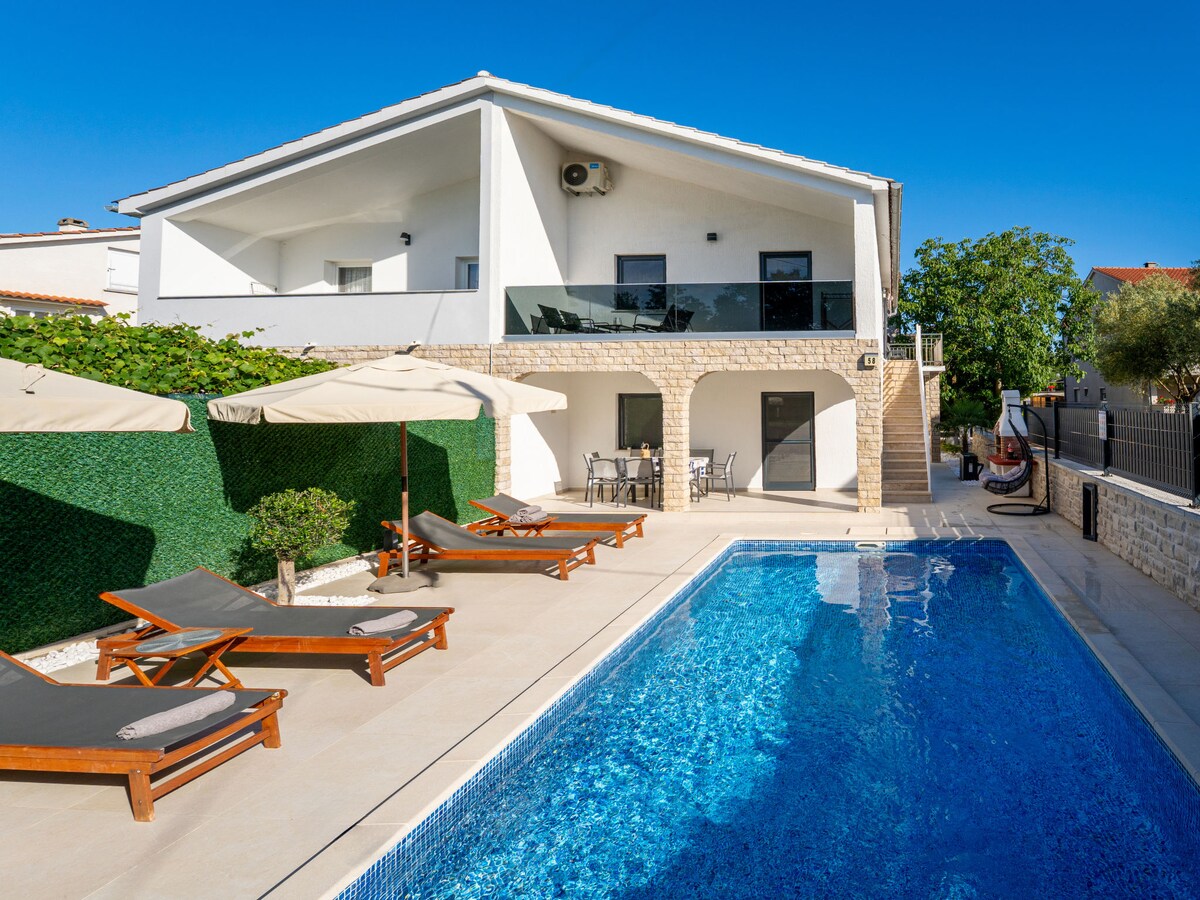 Βίλα με μεσογειακό στιλ στο νησί Krk με θερμαινόμενη πισίνα και θέα στη θάλασσα. Διαθέτει 4 ευρύχωρα υπνοδωμάτια, το καθένα με ιδιωτικό μπάνιο. Βρίσκεται σε ένα ήσυχο παραθαλάσσιο χωριό και προσφέρει πανοραμική θέα στην Αδριατική, μεγάλη βεράντα, καθιστικό, πισίνα, ξαπλώστρες και ομπρέλες για ηλιοθεραπεία. Υπάρχει επίσης μια πλήρως εξοπλισμένη καλοκαιρινή κουζίνα. Το εσωτερικό συνδυάζει τη μεσογειακή γοητεία με τη σύγχρονη κομψότητα, συμπεριλαμβανομένης μιας πλήρως εξοπλισμένης κουζίνας. Απολαύστε όλες τις ανέσεις αυτής της εκπληκτικής βίλας.