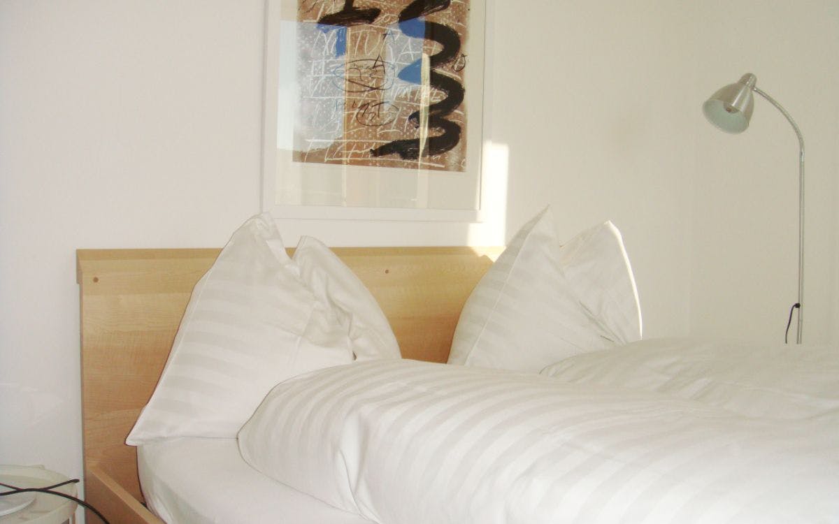 Our unique 2-bed apartments (approx. 50 to 65m2) are located in a south-facing position and offer a view into the Roseg valley. The 2-bed apartments consist of a bedroom and a bathroom, as well as a high-quality and fully equipped kitchen with a combined living & dining area. In our rooms you will find first-class Schramm spring core beds, which stand for excellent sleeping comfort. The floors are made of oak parquet and the bedrooms are lined with spruce paneling. The apartments offer a loggia.