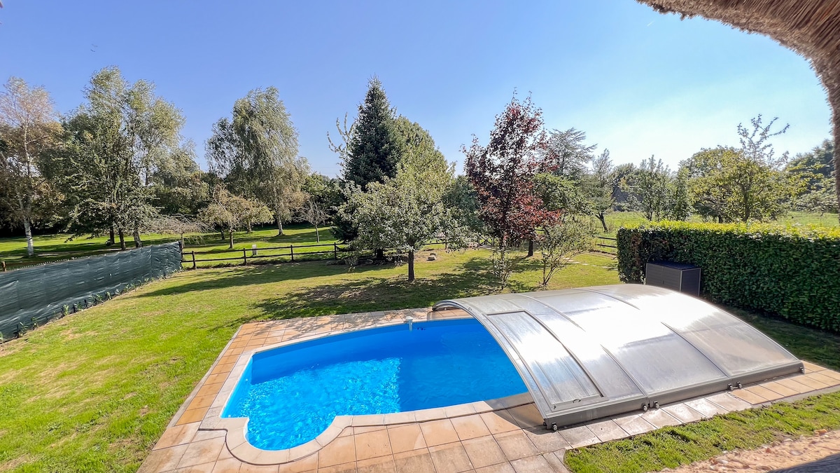 Θα απολαύσετε ένα οικογενειακό εξοχικό σπίτι, ανακαινισμένο το 2020, σε ένα κτήμα 2 εκταρίων όπου ζουν μερικά πρόβατα και άλογα. Χαρακτηριστικό νορμανδικό σπίτι, πολύ φωτεινό και με πρόσβαση στον κήπο. Δύο βεράντες, μία από τις οποίες είναι στεγασμένη, σας δίνουν τη δυνατότητα να γευματίσετε έξω ακόμη και τις ημέρες που ο καιρός είναι αβέβαιος. 🧺 Καθαρισμός, κλινοσκεπάσματα, πετσέτες, πετσέτες κουζίνας και καυσόξυλα*: ΠΕΡΙΛΑΜΒΆΝΟΝΤΑΙ Όλα τα κρεβάτια θα είναι στρωμένα κατά την άφιξή σας και το σπίτι θα θερμαίνεται* (*κατά τη διάρκεια της σεζόν) Wi-Fi υψηλής ταχύτητας με οπτικές ίνες.