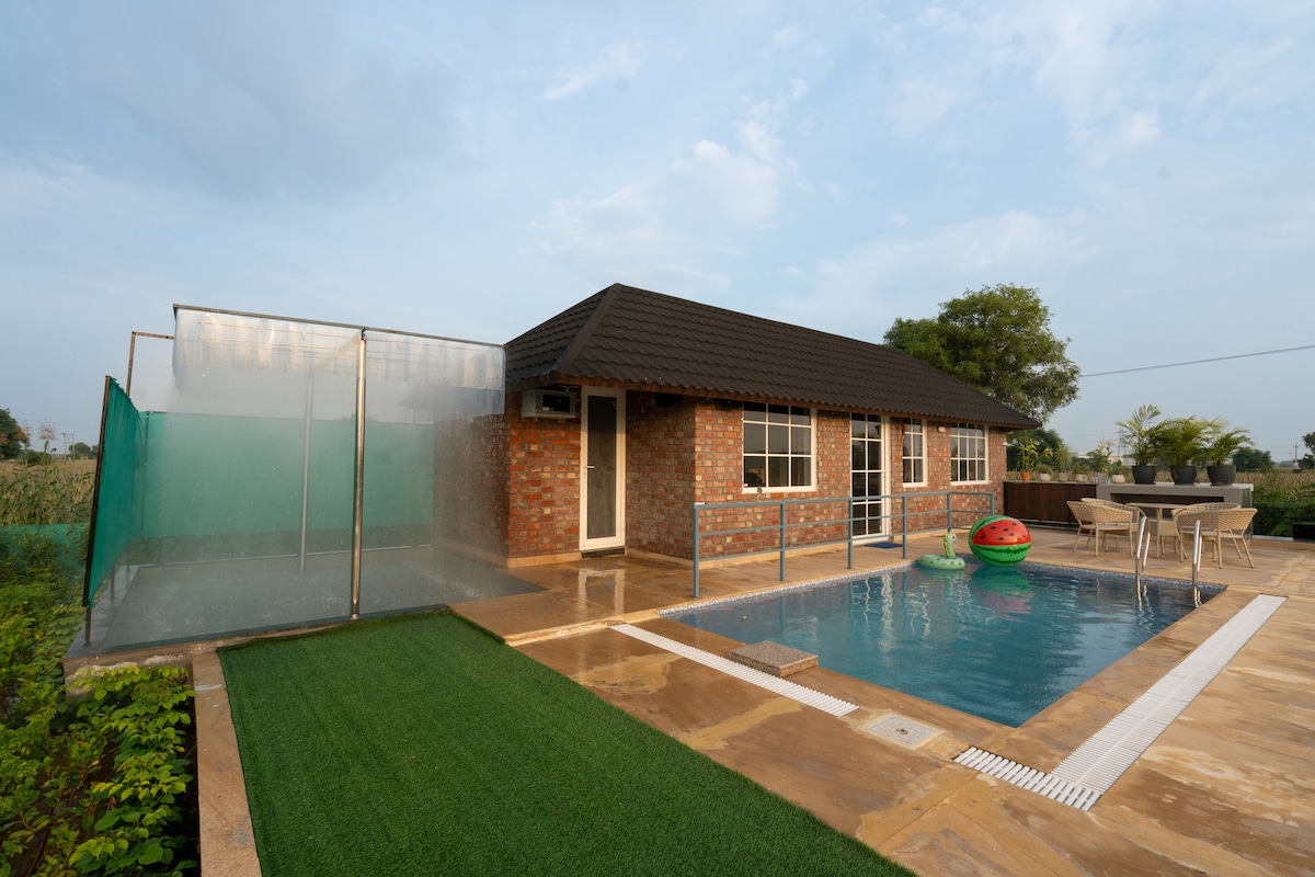 ◆Βρίσκεται στα περίχωρα του Gurgaon, στο Manesar. ◆Ευρύχωρη αγροικία 4 υπνοδωματίων ιδανική για έως και 12 άτομα. ◆Ιδιωτική πισίνα για δροσιστικές βουτιές. ◆Κιόσκι για χαλαρή χαλάρωση στην ύπαιθρο. ◆Βεράντα ιδανική για συγκεντρώσεις. ◆Κομψό μπαρ για βραδινή διασκέδαση. ◆Ευρύχωρο σαλόνι με άνετα καθίσματα. ◆Τεράστιος κήπος για κρίκετ, μπάντμιντον και ποδόσφαιρο. ◆Ιδανικό για μια ήσυχη αλλά διασκεδαστική απόδραση σε αγροικία.